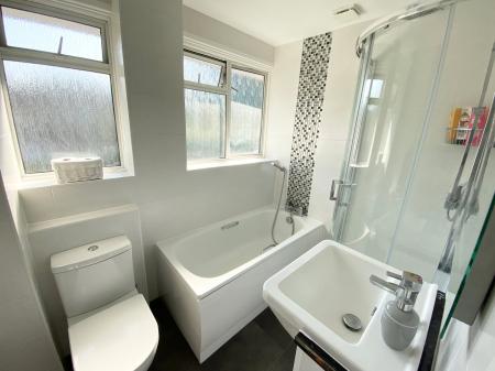 To the first floor are three bedrooms all with built in storage, and the refitted family bathroom. The bathroom boasts a panel enclosed bath, separate corner shower cubicle, WC and washbasin.