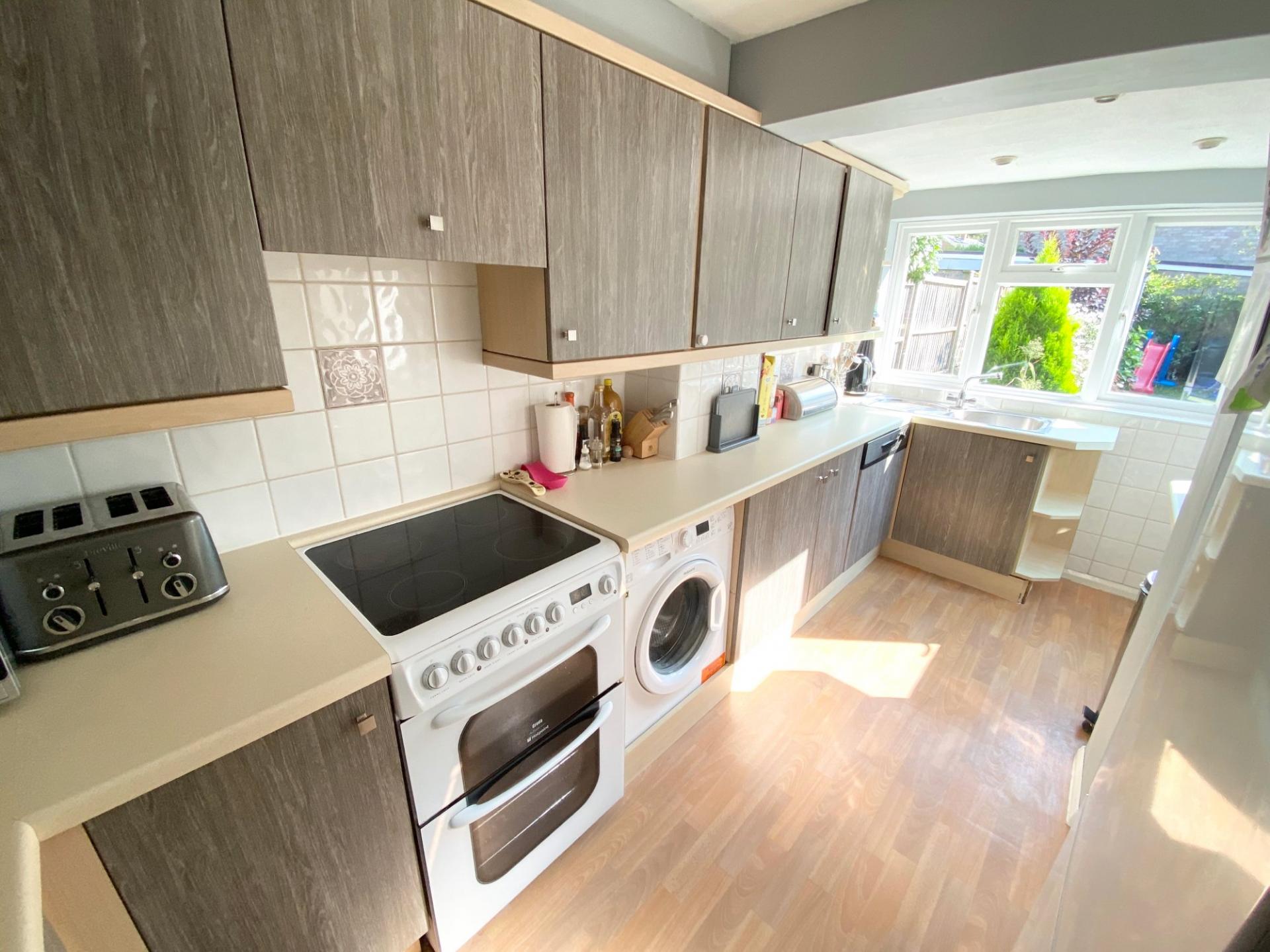 FULL DESCRIPTION A well-presented, three-bedroom family home situated in a quiet cul de sac within walking distance of local schools, shops, pubs and the Basingstoke Canal. The well planned round floor accommodation comprises an open plan double aspect living/dining room with uPVC double glazed windows overlooking the front of the property and sliding doors leading out to the south facing rear garden. To the rear of the property is the extended kitchen which also has a door leading out to the garden.