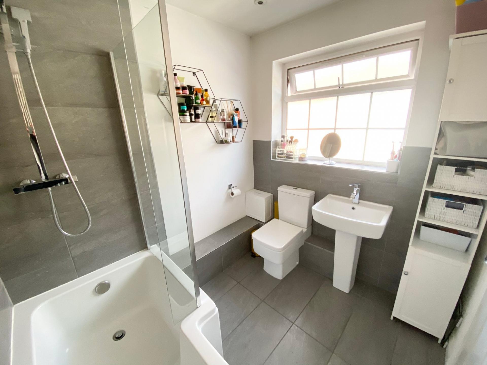 Further features include a refitted bathroom with a 'P' shaped bath with wall mounted shower above, WC, pedestal basin and a wall mounted heated towel. New gas boiler, Upvc double glazed windows, a south facing rear garden that is mainly lawn and backs on to a beautiful meadow. To the front of the property is a driveway providing off street parking leading to the garage.