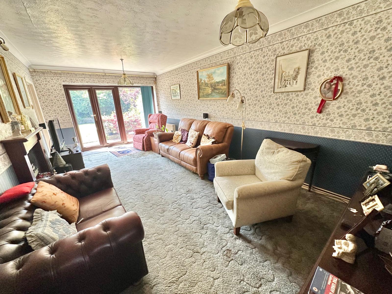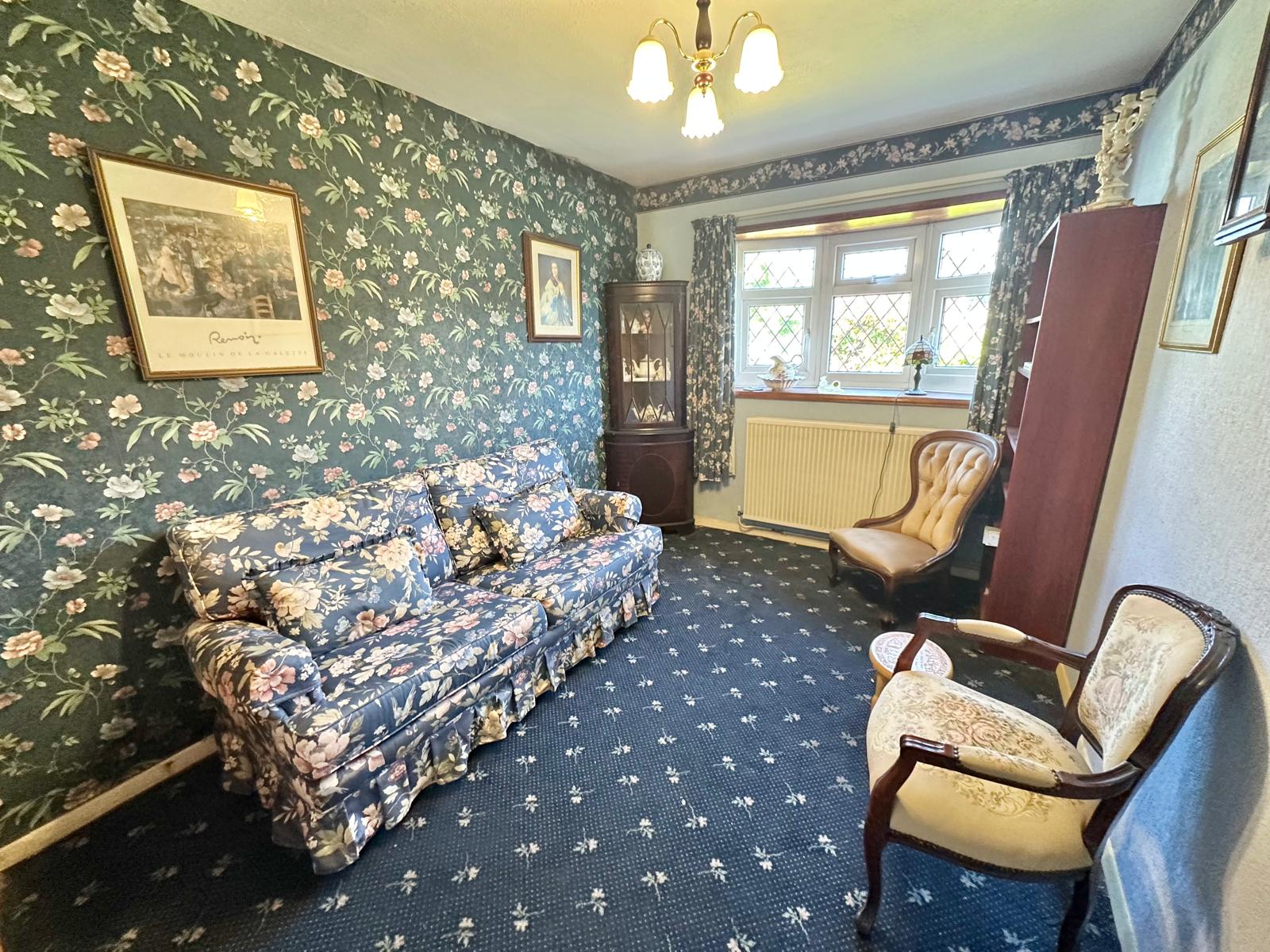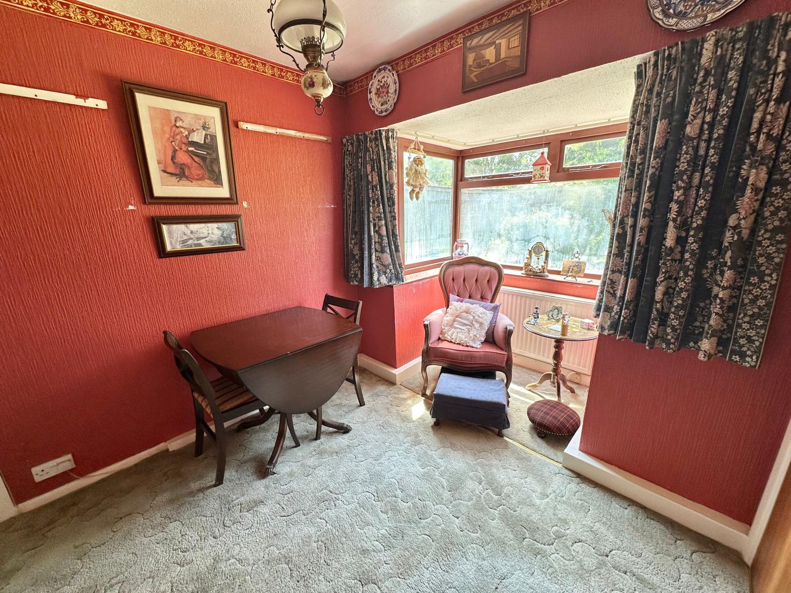 The larger than expected accommodation comprises a rear aspect living room with siding doors out to the rear garden, as well a door through to the dining room. The dining room features a box bay window overlooking the rear garden in addition to the doorway through to the kitchen. The kitchen has a matching range of eye and low-level units, an integrated waist height oven & grill & space and plumbing for a washing machine and low-level fridge.