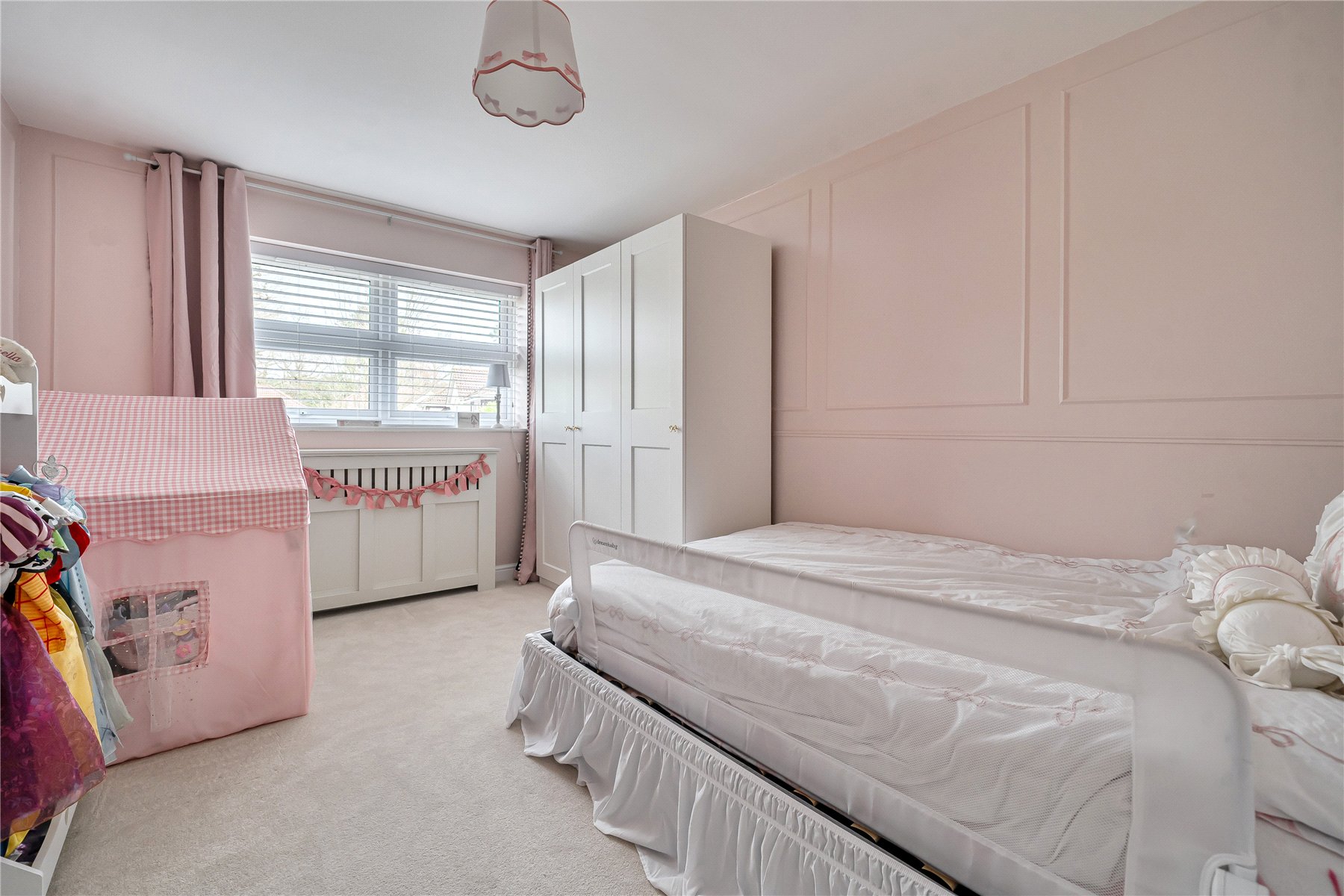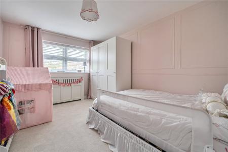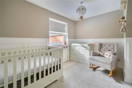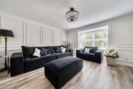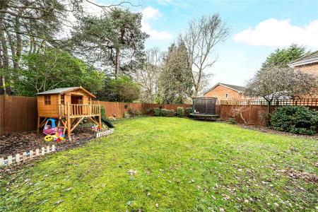 Backing onto woodland, the rear garden enjoys a peaceful and secluded setting. Predominantly laid to lawn with mature planting and established borders, it provides both privacy and space, ideal for elegant outdoor entertaining or relaxed family time.