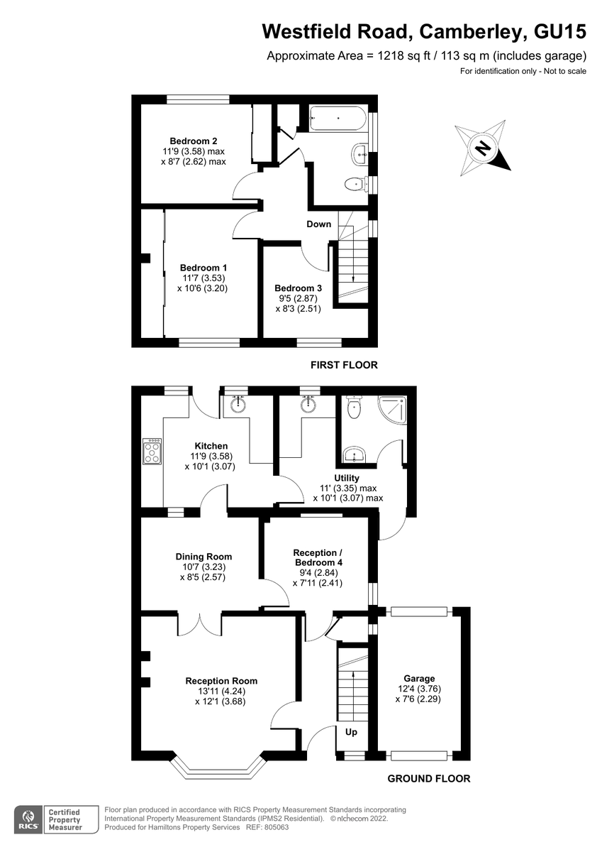 To the first floor there is a refitted bathroom and 3 bedrooms two of which are doubles.