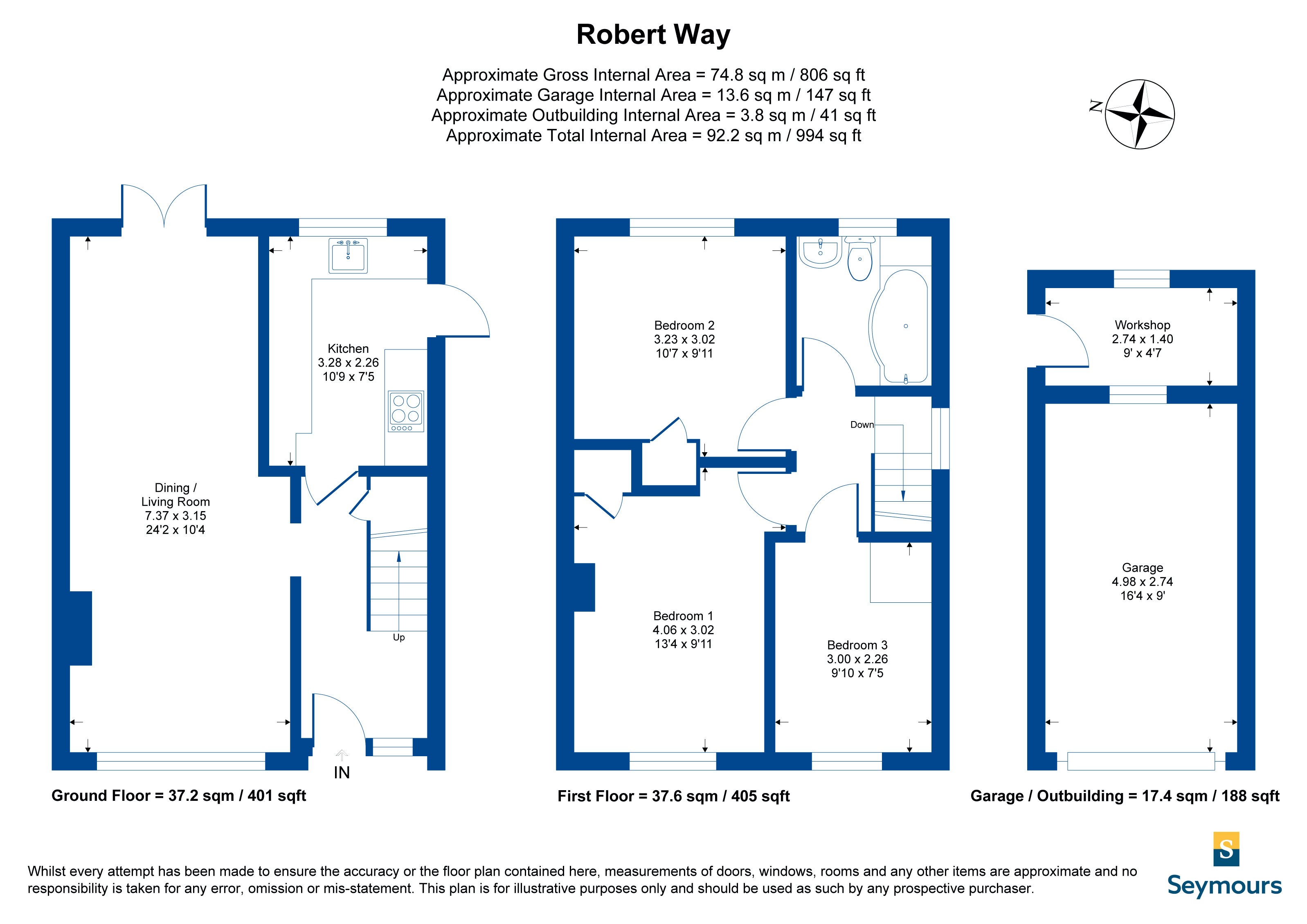 Internally the vendors have modernised the property, including a brand new kitchen, carpets and a complete redecoration throughout. There is a double aspect living room with patio doors. The first floor are three well proportioned bedrooms, the two double bedrooms offer built in wardrobes and all share the modern family bathroom.