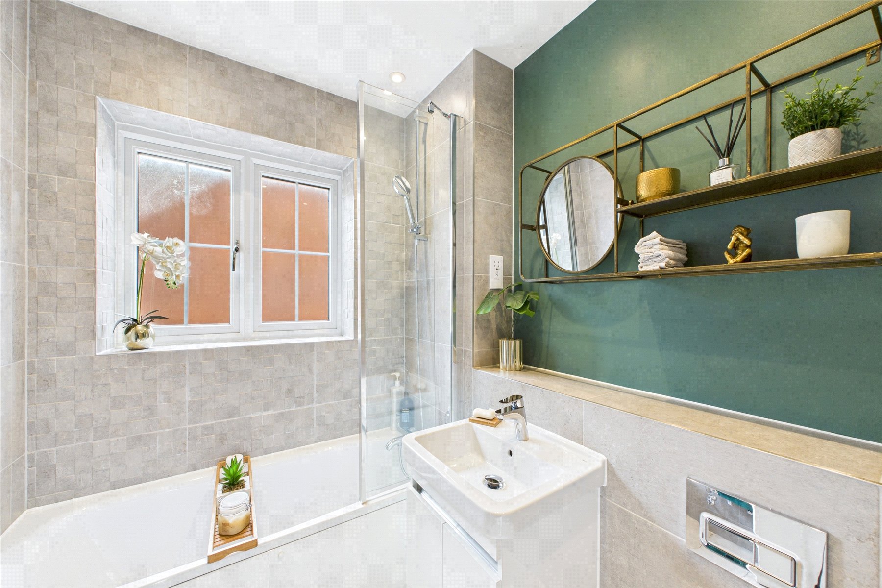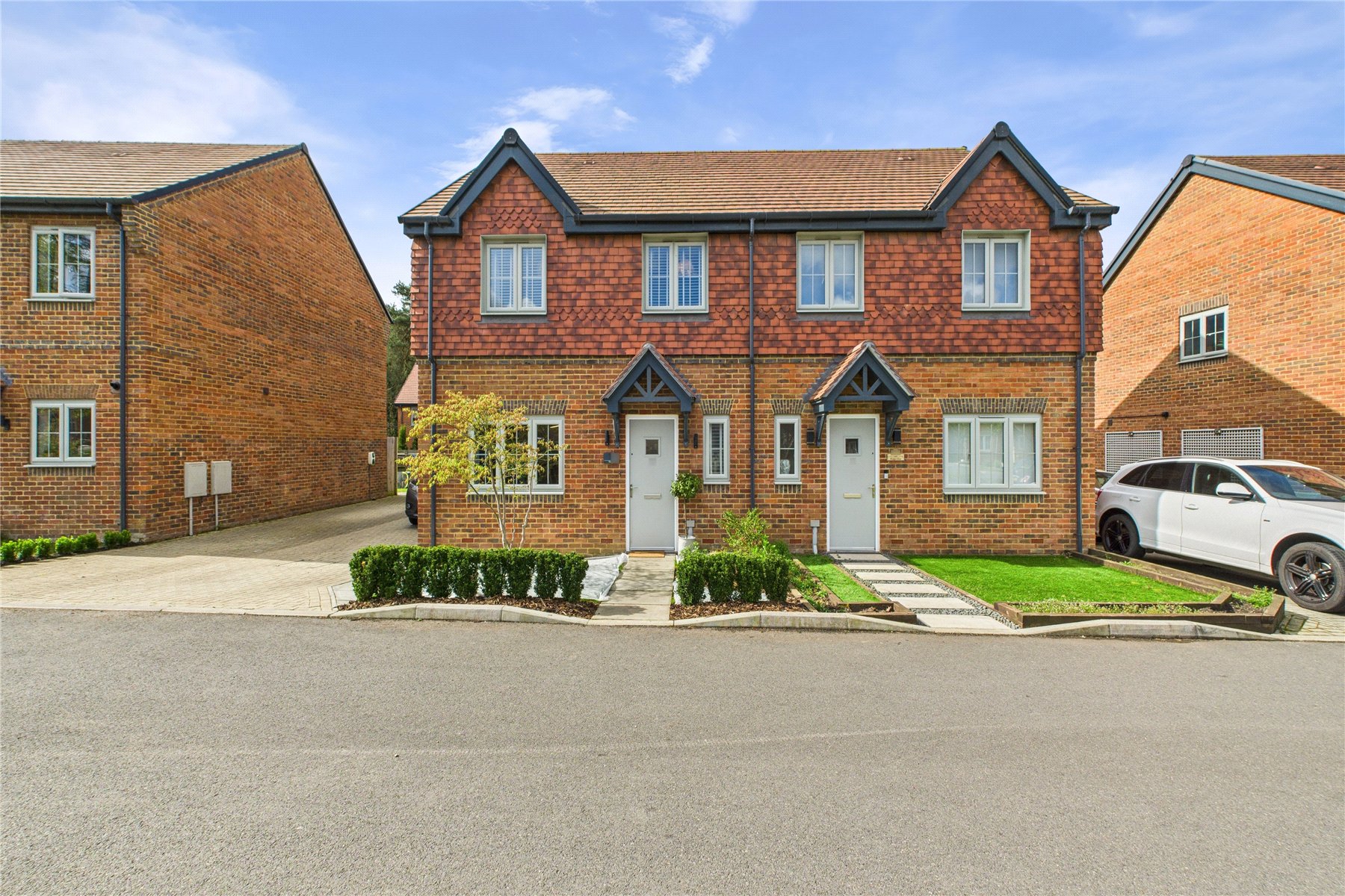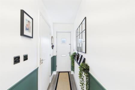 Externally, the property continues to impress. Overlooking a communal green to the front, the property provides driveway parking for two cars, and lawned front garden.