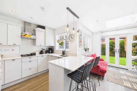 The kitchen boasts a range of high-quality integrated appliances and composite worktops with an extended breakfast bar. The dining area offers ample space for a full-size dining table and chairs, while the family area outlooks to the private rear garden.