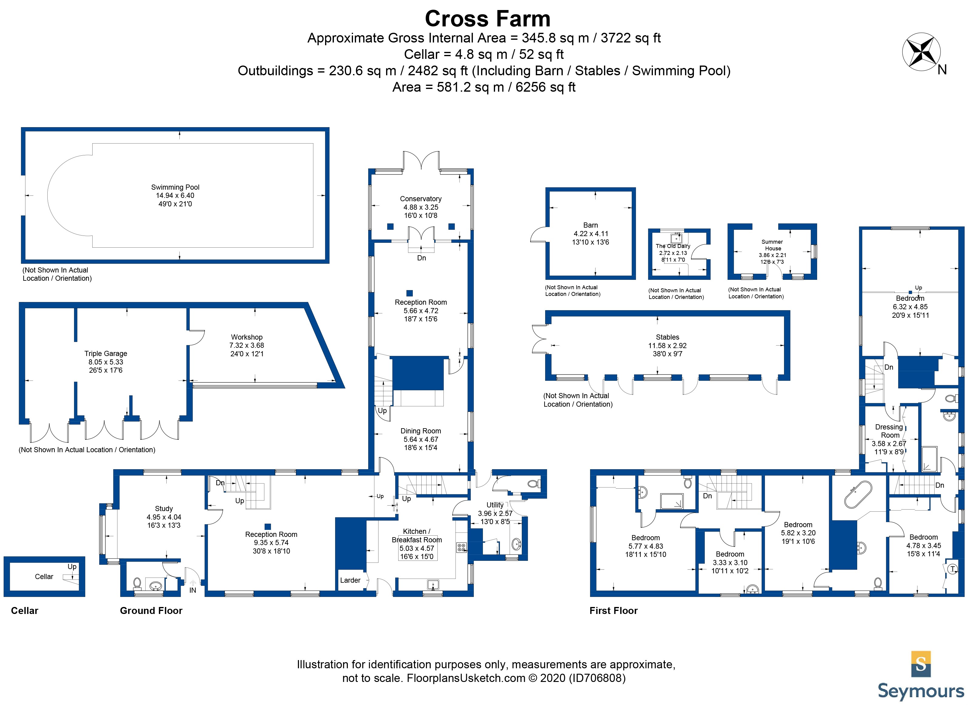 Externally, the property is approached via a sweeping driveway, leading to ample parking and a triple garage. The grounds extend to approximately 2.3 acres and are a defining feature of the home, offering an exceptional sense of privacy, maturity and tranquillity.Beautifully curated, the gardens comprise expansive lawns interspersed with established trees and well-stocked borders, alongside a charming walled garden and a traditional orchard, creating a quintessential English country setting. Two picturesque ponds further enrich the landscape and provide delightful focal points throughout the grounds.