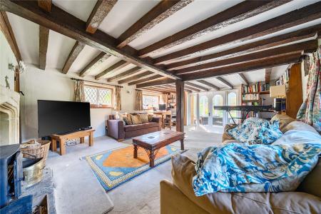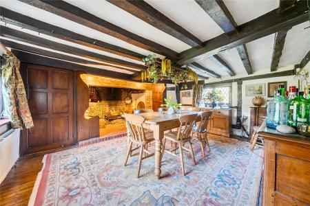 Steeped in history, the property retains an abundance of original features including exposed oak beams, impressive inglenook fireplaces, and traditional leaded light windows, all of which contribute to its warm and inviting atmosphere. The accommodation unfolds with a natural flow, beginning with a welcoming reception hall that leads through to a series of elegant and characterful reception rooms. Each space offers its own distinct charm, from cosy, intimate areas centred around open fireplaces to larger, more formal rooms ideal for entertaining.