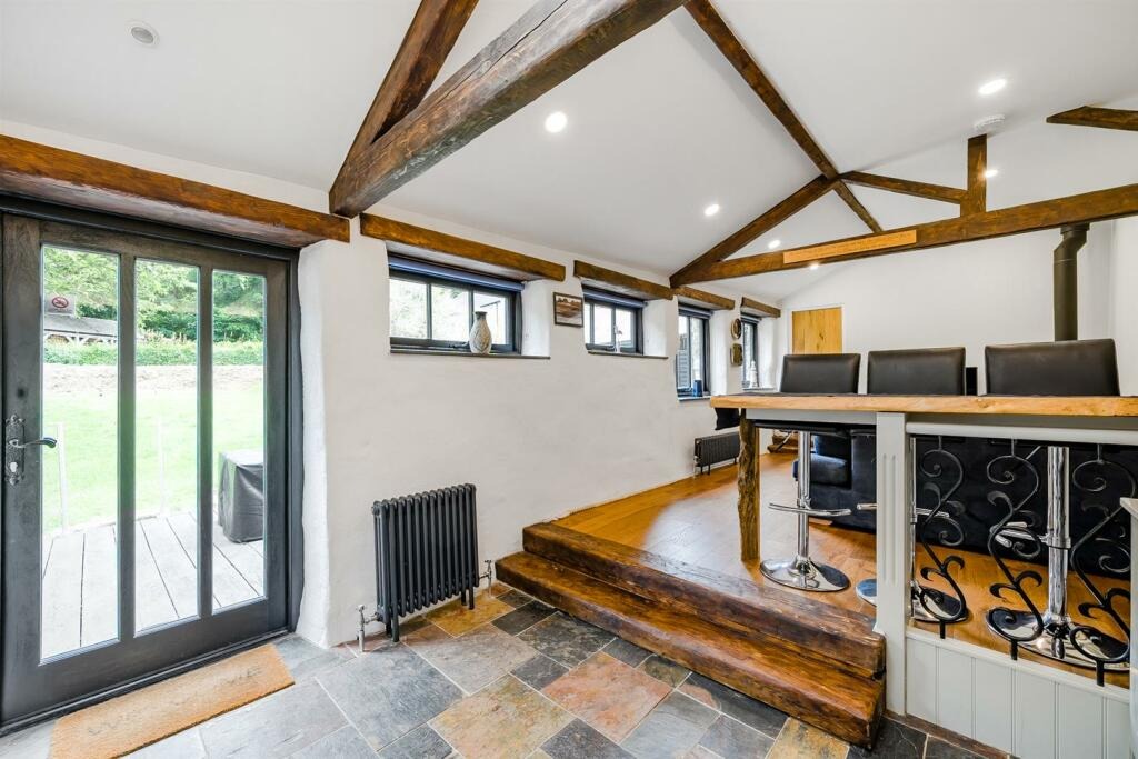 This immaculately presented Grade II listed barn conversion boasts a wealth of period features, including beautiful stone working that adds character and charm to the property. As you step inside, you are greeted by a spacious open plan reception room that offers a cosy and inviting atmosphere, with the living space featuring a contemporary log burner.