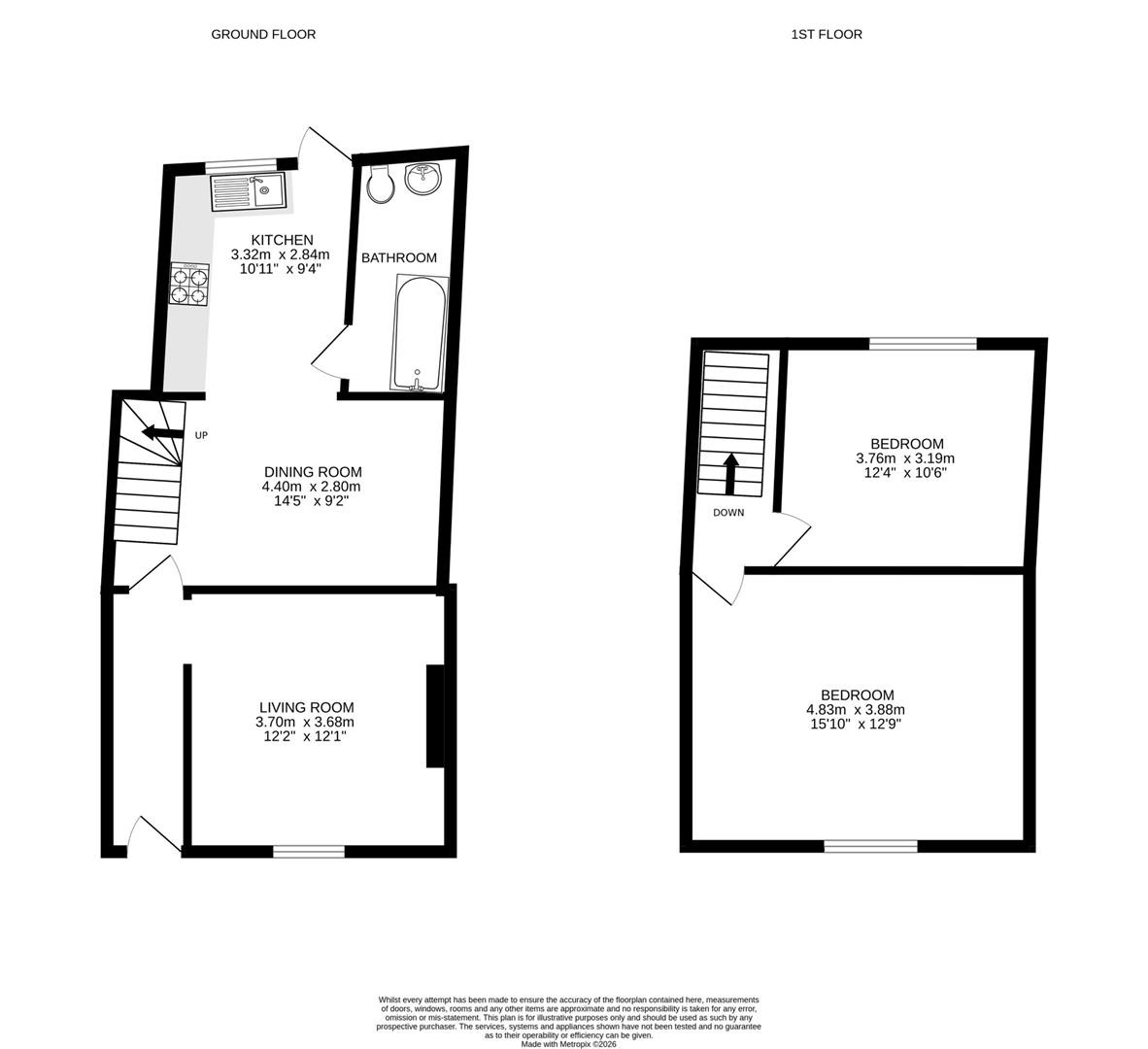 Situated with easy access to the town centre, this two bedroom terraced house offers a well balanced layout. The property features a cosy living room, creating a comfortable and welcoming space to relax. The kitchen diner forms the heart of the home, providing a lovely social environment with ample room for dining and everyday living. The bathroom is conveniently located just off the kitchen, making practical use of the ground floor layout.