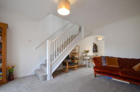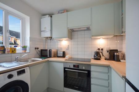 An entrance door opens into the open plan dining/sitting area, with an opening leading into the recently installed kitchen. Fitted with a matching range of wall and base units with work surface over, incorporating a stainless-steel sink with mixer tap and drainer, integrated oven and hob with extractor hood above. There is space and plumbing for a washing machine and fridge/freezer. A wall-mounted gas boiler serves the heating and hot water, while a window to the front completes the space. To the rear, the open plan living and dining room offers a generous and versatile area with staircase rising to the first floor, complemented by sliding doors opening out onto the garden. The first-floor landing provides access to the loft and doors to the adjoining rooms. The main bedroom is positioned to the rear of the property with a window with views over the garden. Bedroom two enjoys a front aspect with a built-in airing cupboard housing the hot water cylinder. The bathroom has been recently completely re-fitted with a new three-piece suite including a combined bath and shower with a wall-mounted shower attachment and electronic ‘smart’ controller. The bath, WC, and hand basin with mixer tap are complimented by waterproof splash panelling and a privacy window to the side.