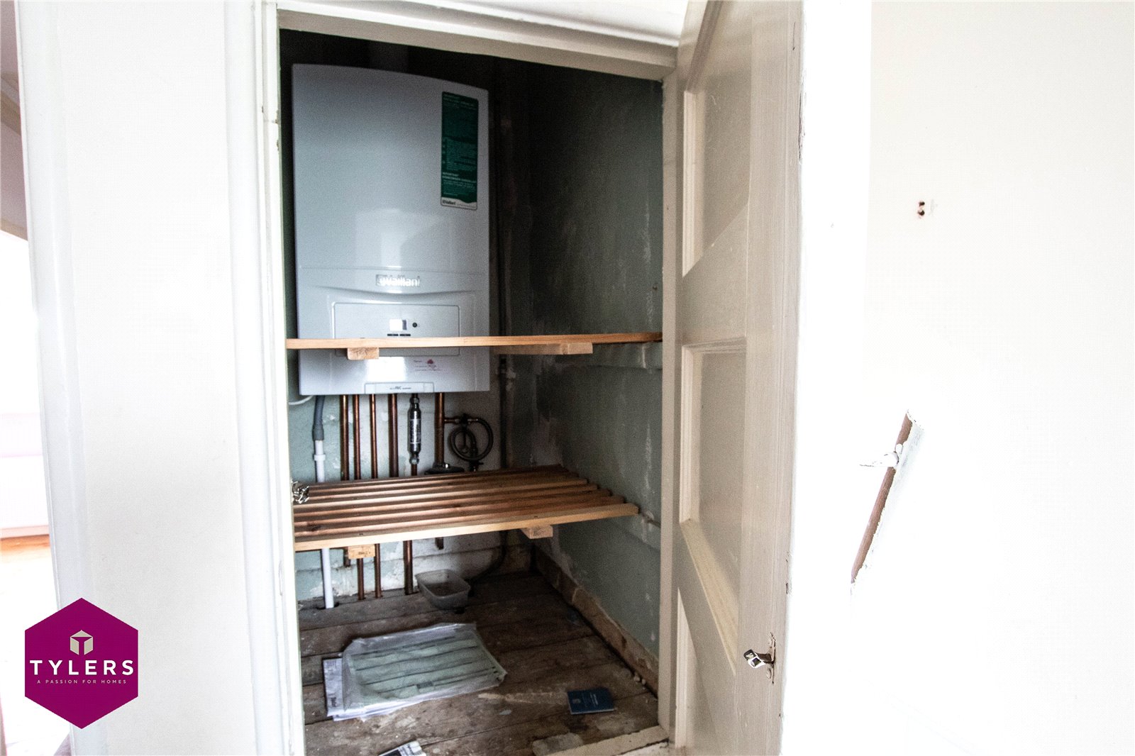 Landing with loft access. Doors to:- Three Bedrooms, Two doubles and a generous Single with built in wardrobe. Family Bathroom comprising of a Panelled bath. Pedestal Wash hand basin. Opaque double glazed window to front aspect. Heated towel rail. Cupboard over the stairs housing the gas combination boiler.
