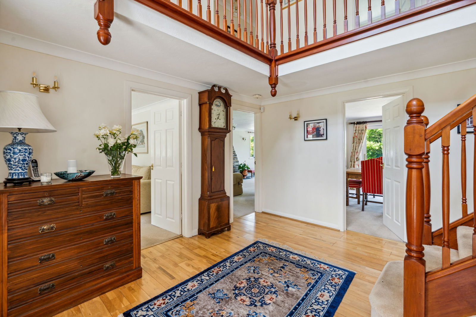 Large and spacious entrance hall with stairs to first floor, radiator, double cloaks hanging storage cupboard.