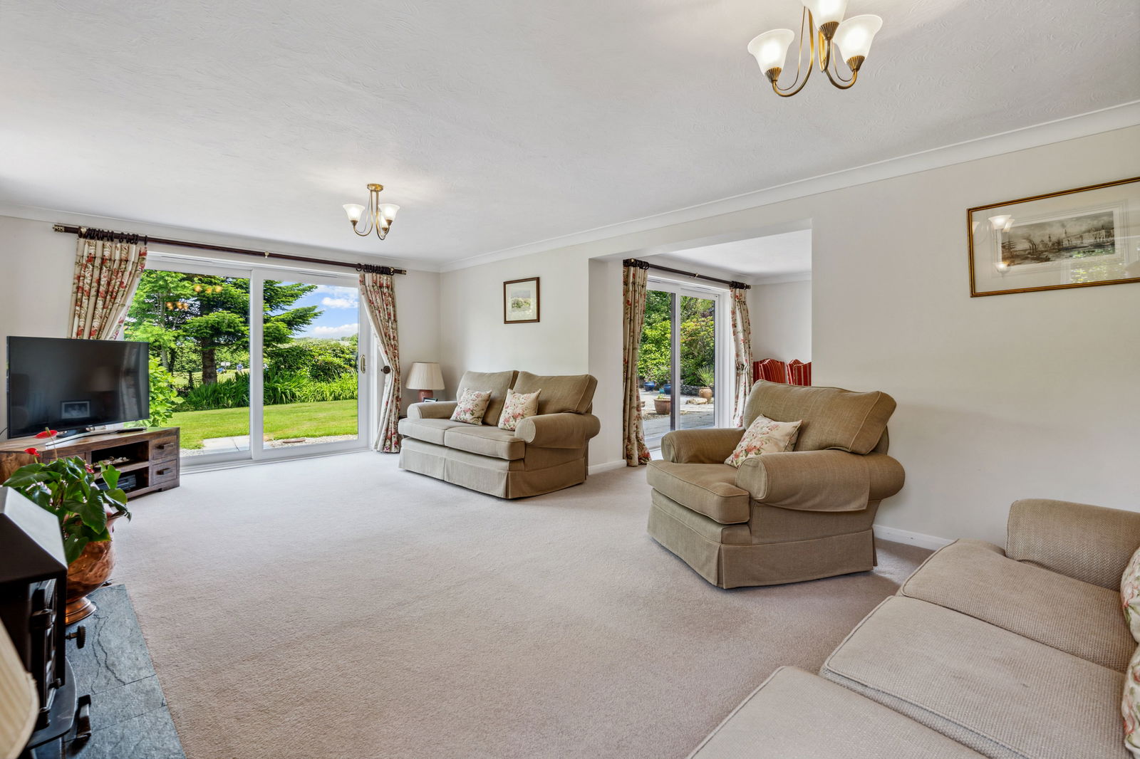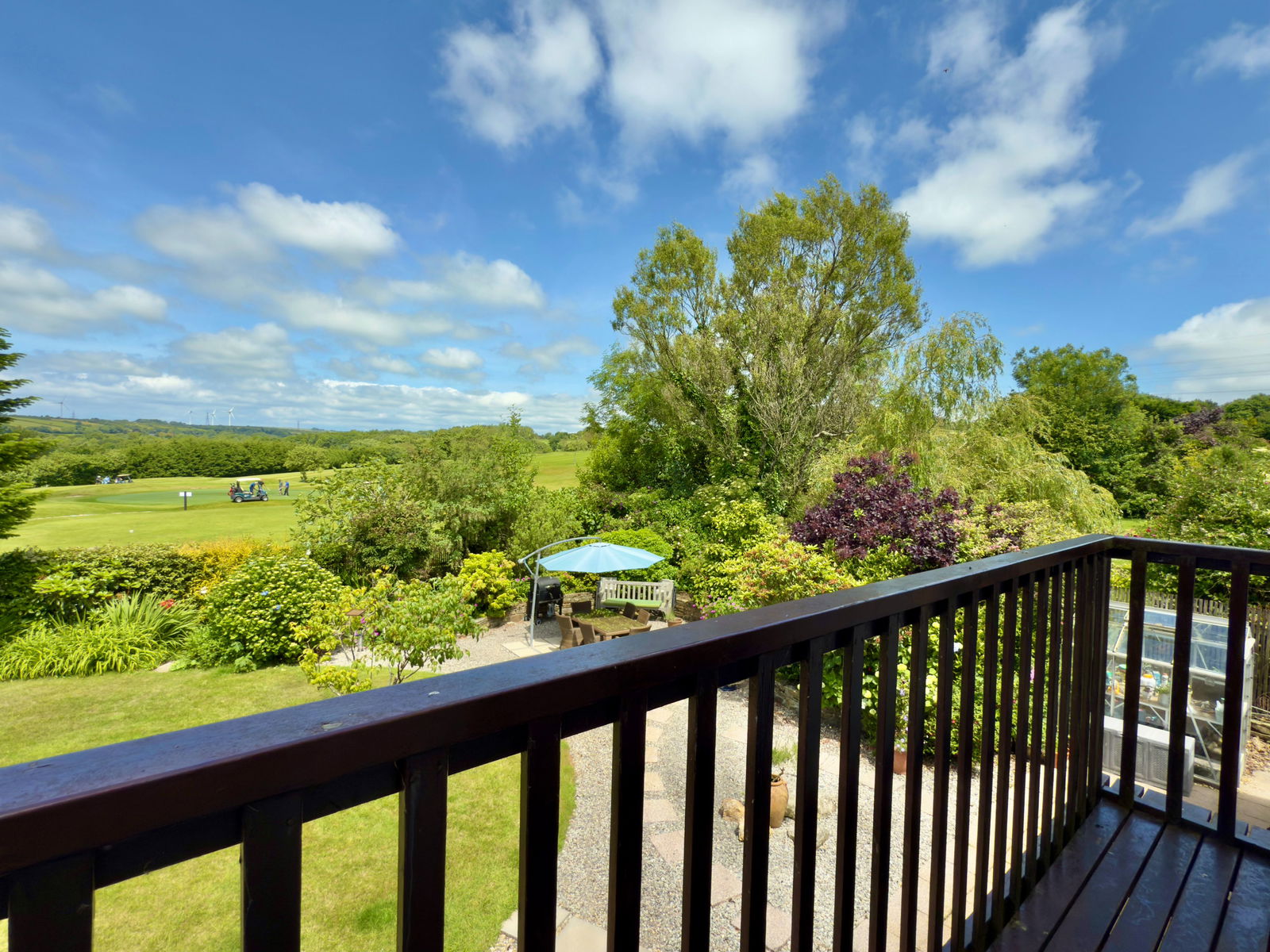 Enjoying great views of the garden, golf course and countryside beyond.