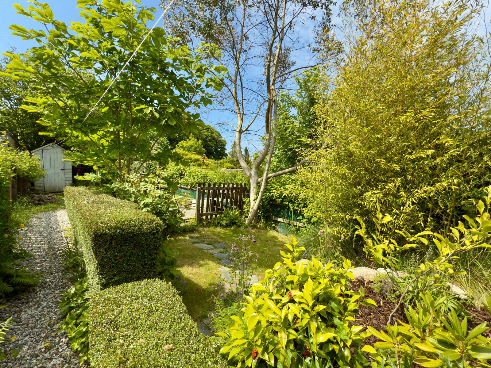 There is a slate courtyard immediately at the rear with steps up to a garden laid to lawn with flower bed together with a raised patio where there are 2 useful garden sheds. The garden has a lovely range of mature shrubs and trees throughout.