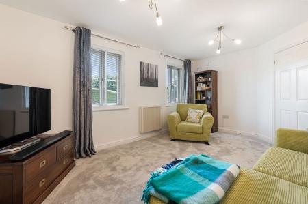 A lovely and light living room with 2 UPVC double glazed windows to front with secondary glazing. Wall mounted electric fireplace. T.V. point. Modern electric radiator. Door to