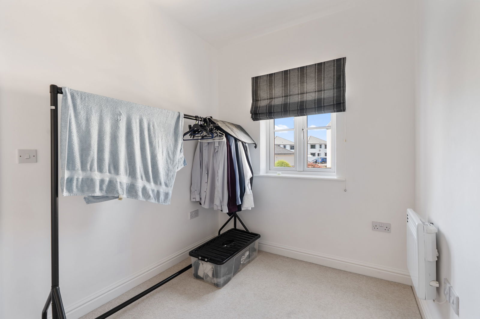 2 spacious storage cupboards. Modern electric radiator.
