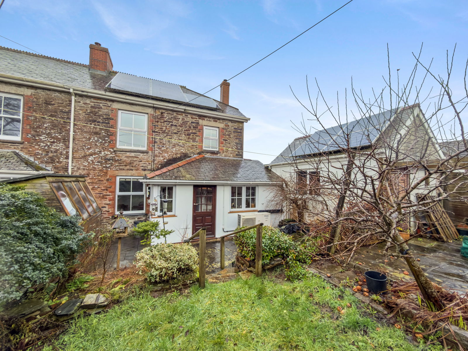 Very pleasant patio area perfect for entertaining and enjoying the sunshine, feature pond, air source heat pump, garden potting shed. Steps lead to upper garden which is fully enclosed with fencing comprising an area laid to lawn, raised planters perfect for vegetables etc, upper patio with pergola with access gate back onto Trefrew Road and gas bottle storage to provide power for the gas cooker.