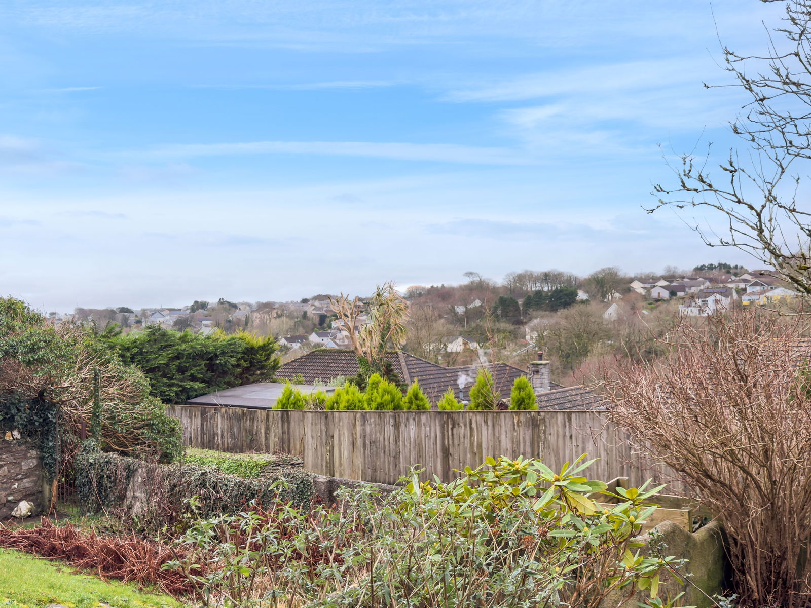 There is a very pleasant front garden with outside light, driveway for 2 cars leading to garage, area of lawn with mature trees and shrubs. There is a veranda with patio area perfect for enjoying the views over Camelford and across to Bodmin Moor. The property does also own a part of the green lane in front which starts from the pedestrian pavement and finishes adjacent to the far wall of the neighbouring property (this will become more apparent on viewing appointments).