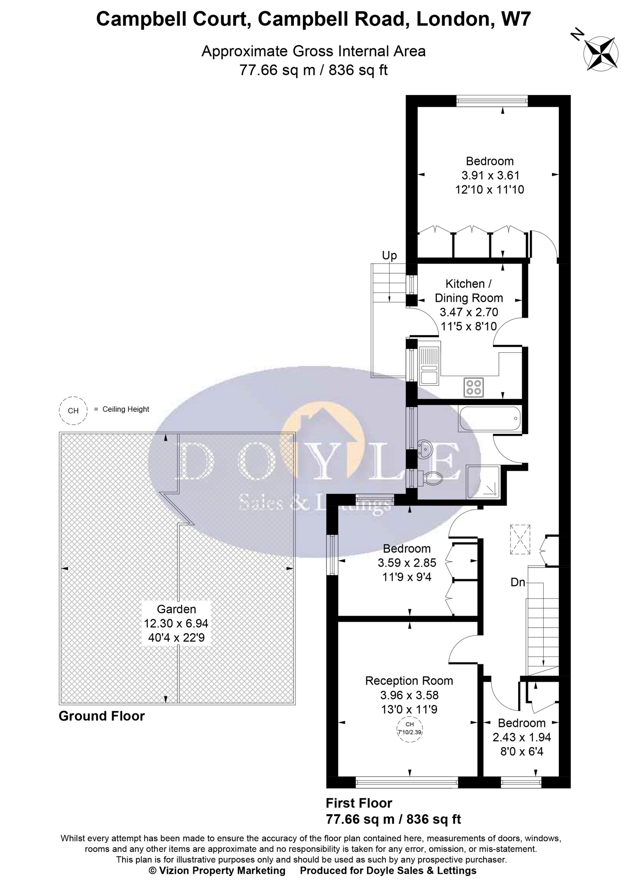 A share of freehold, 3 bedroom, first floor apartment with own large section of garden and private entrance beside the Elizabeth line. The property, over 800 sq ft, comprises own entrance, spacious reception, eat in kitchen, 3 good sized bedrooms and family bathroom. Benefits include share of freehold, long lease and own 40 ft section of garden. Campbell Court is an ideal location, on the doorstep of Hanwell station (Elizabeth line), in a great school catchment area and close to Boston Manor station (Piccadilly line), local shops, Bunny Park, bus routes and road networks. Service charge £1,000 per annum, 900+ year underlying lease.