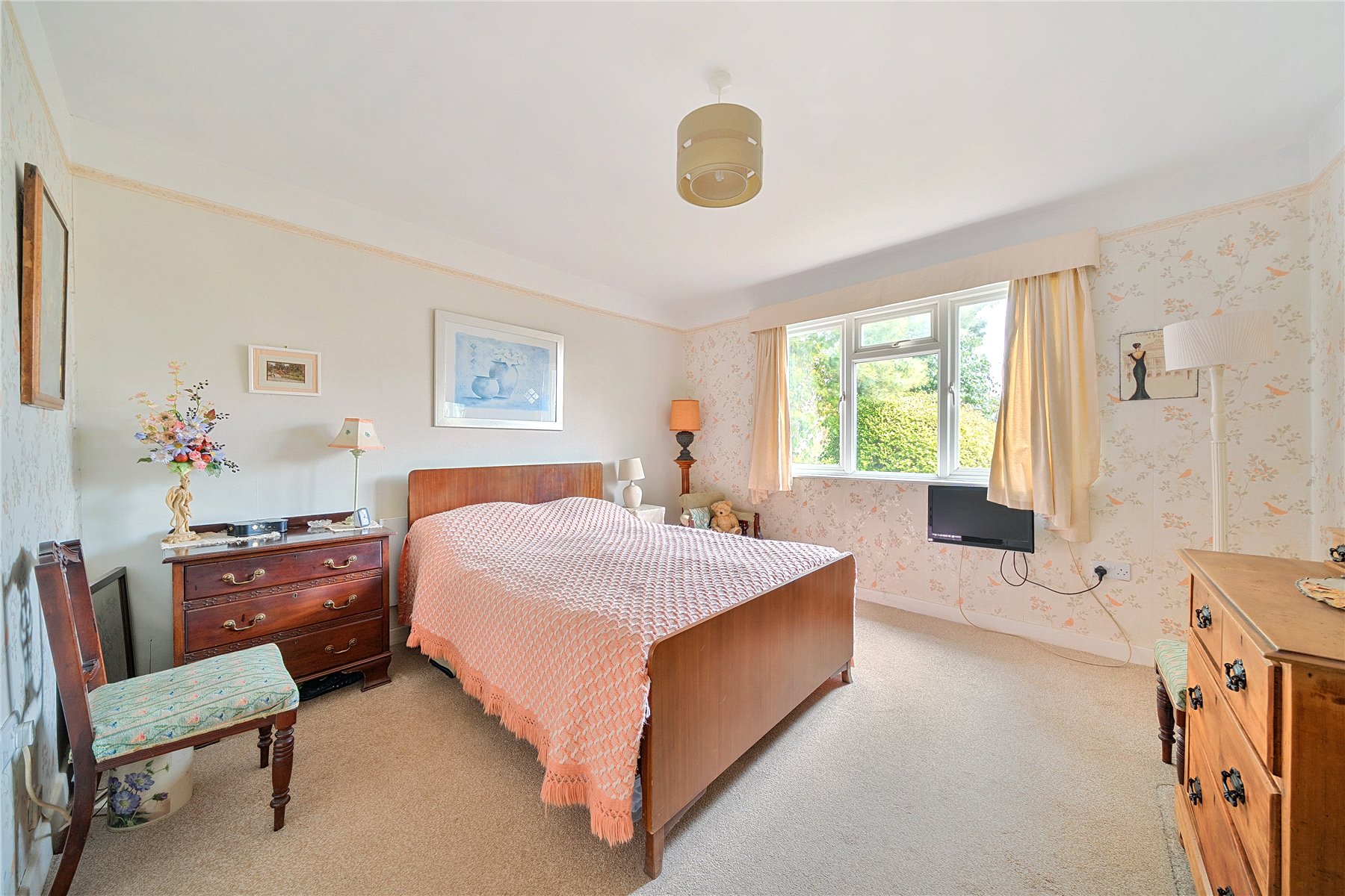The conservatory is a generous, light-filled space overlooking the gardens. It has tiled flooring, a handy cupboard, and two double-glazed doors giving direct access to the garden.