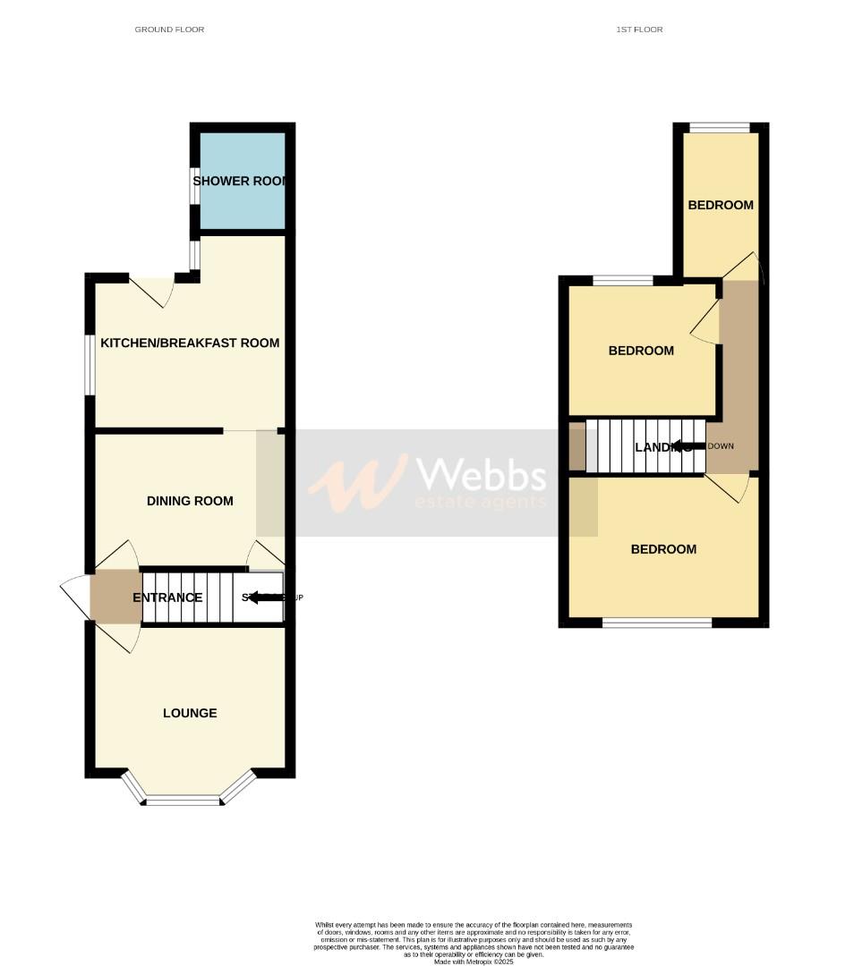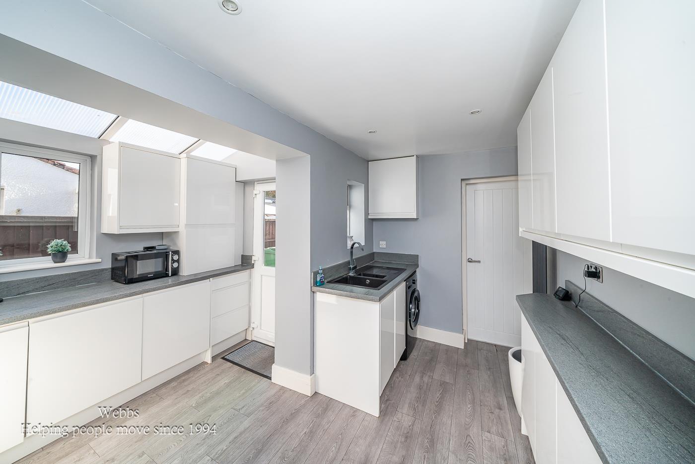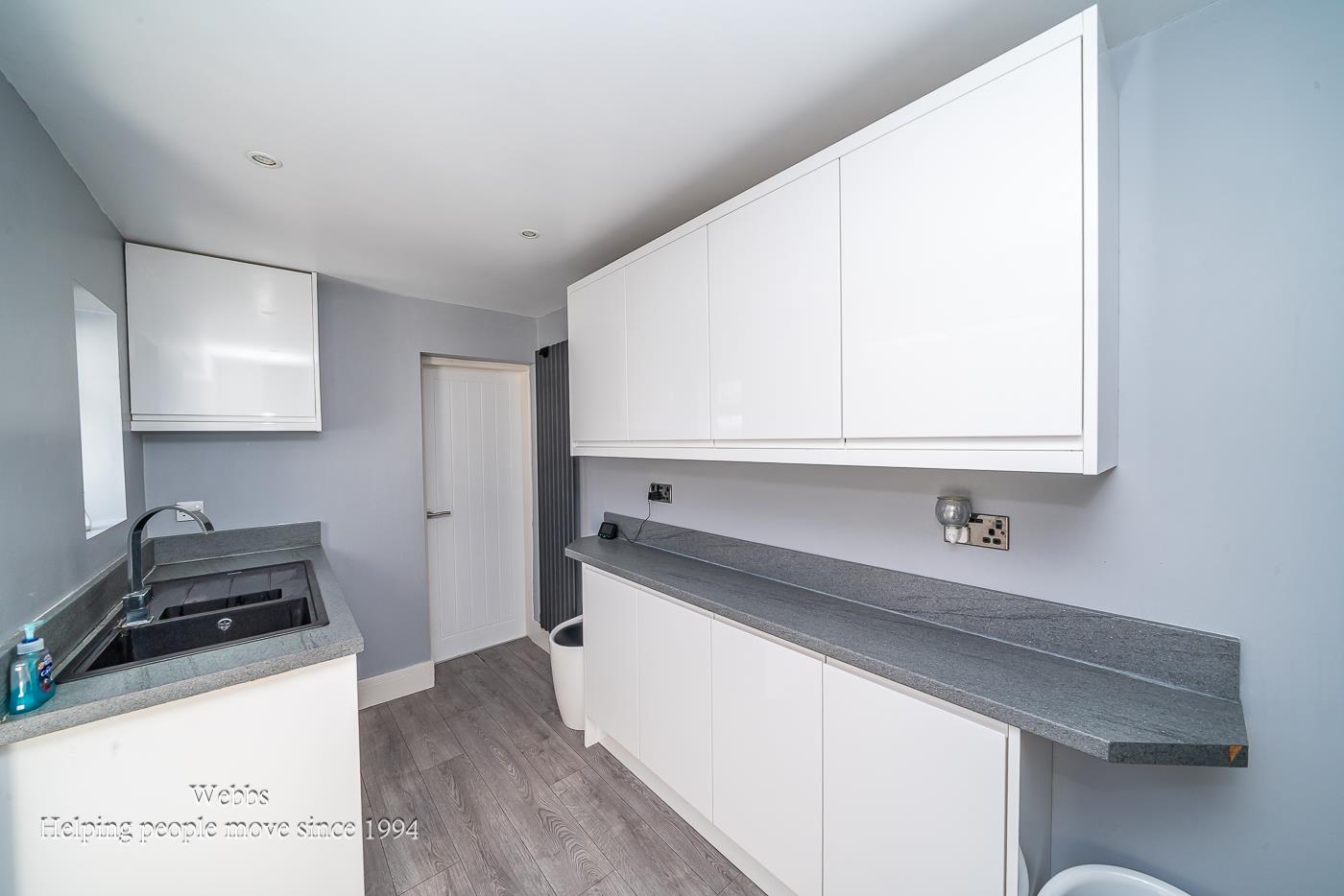 The accommodation briefly comprises of a side entrance leading to two generous reception rooms, a modern fitted kitchen with an array of wall and base units, and a ground-floor shower room featuring a three-piece suite.