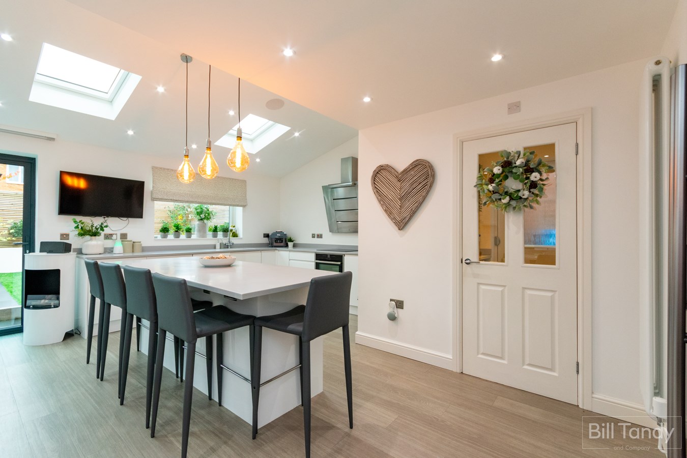 - Superb rear extension creating feature living/kitchen/dining area with central island and separate utility