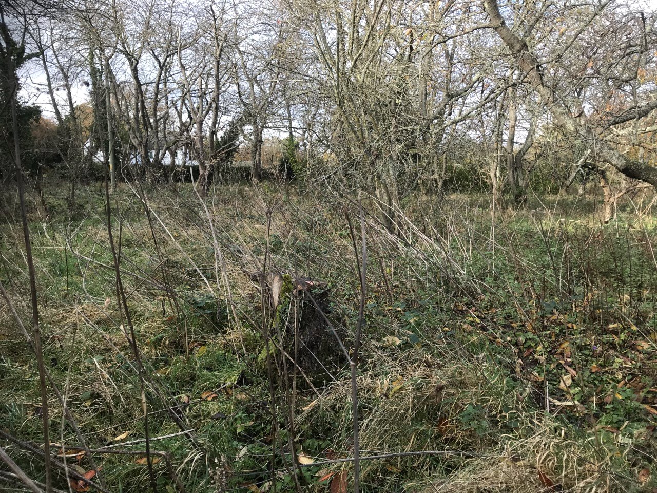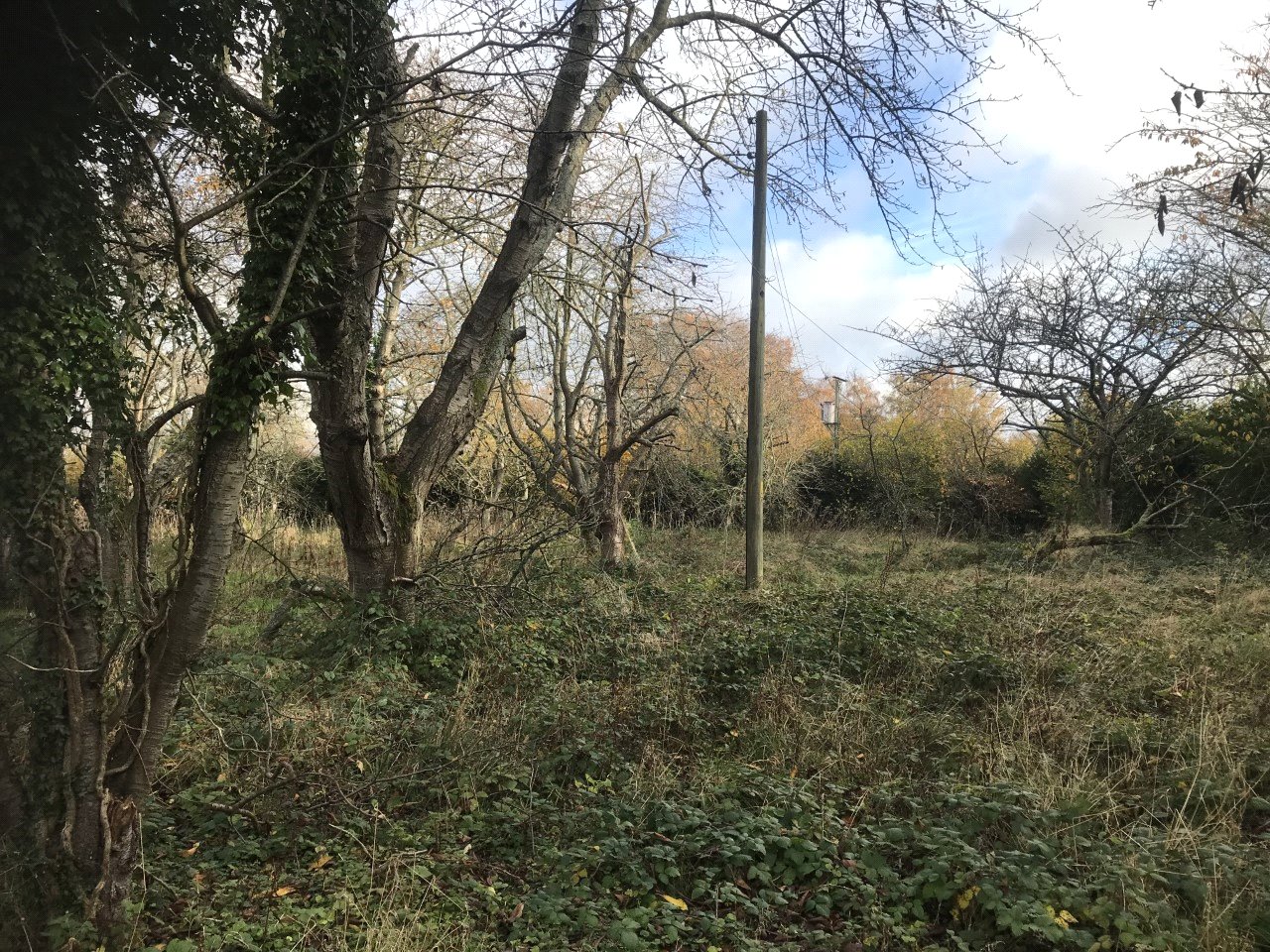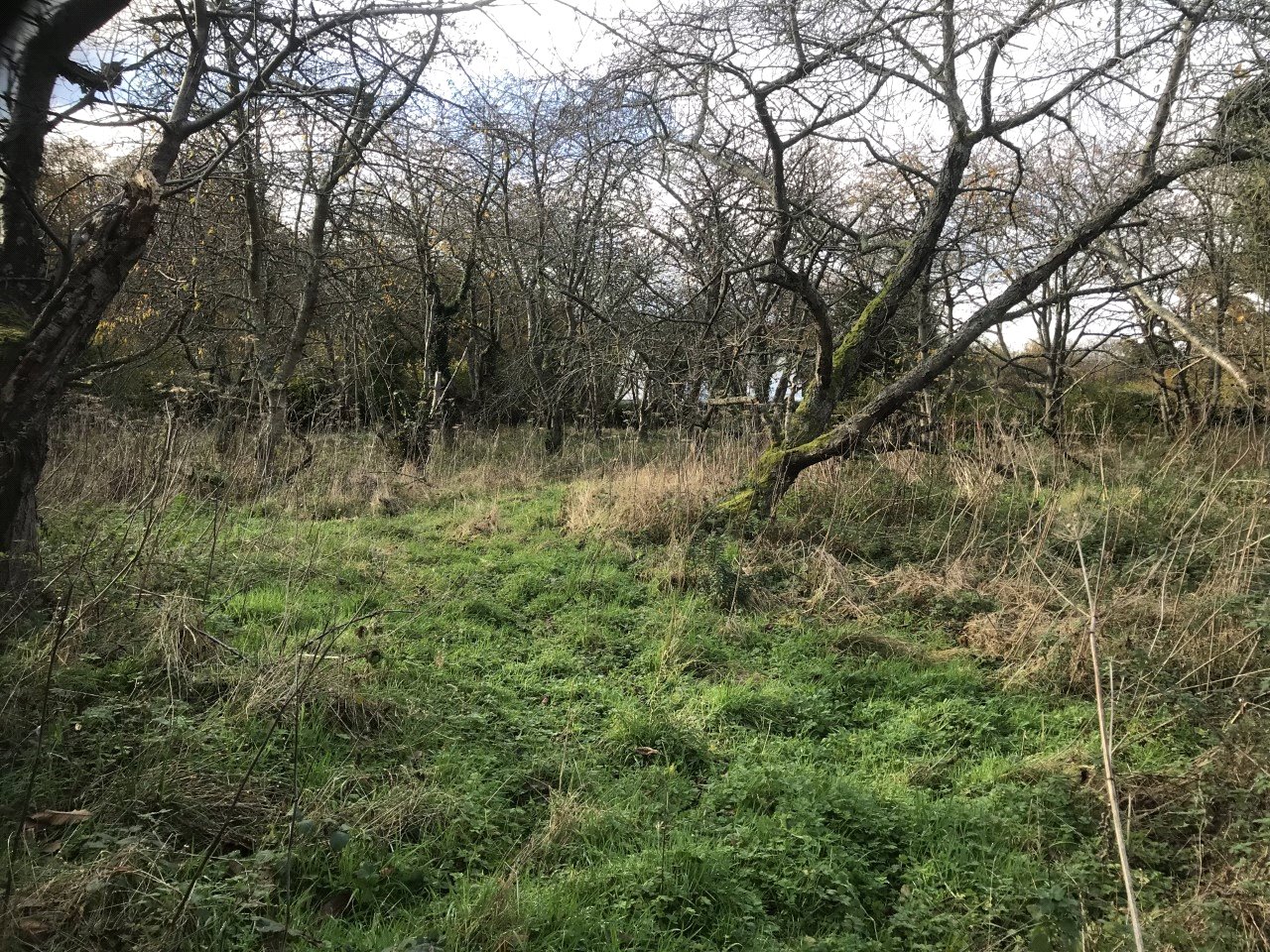 There are a number of old cherry trees planted by the owners, but these have all now died and will require clearing from the site as will the remains of an old damaged shed.