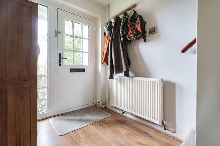Partially double glazed UPVC front entrance door. Radiator. Stairs leading to first floor. Laminate flooring.
