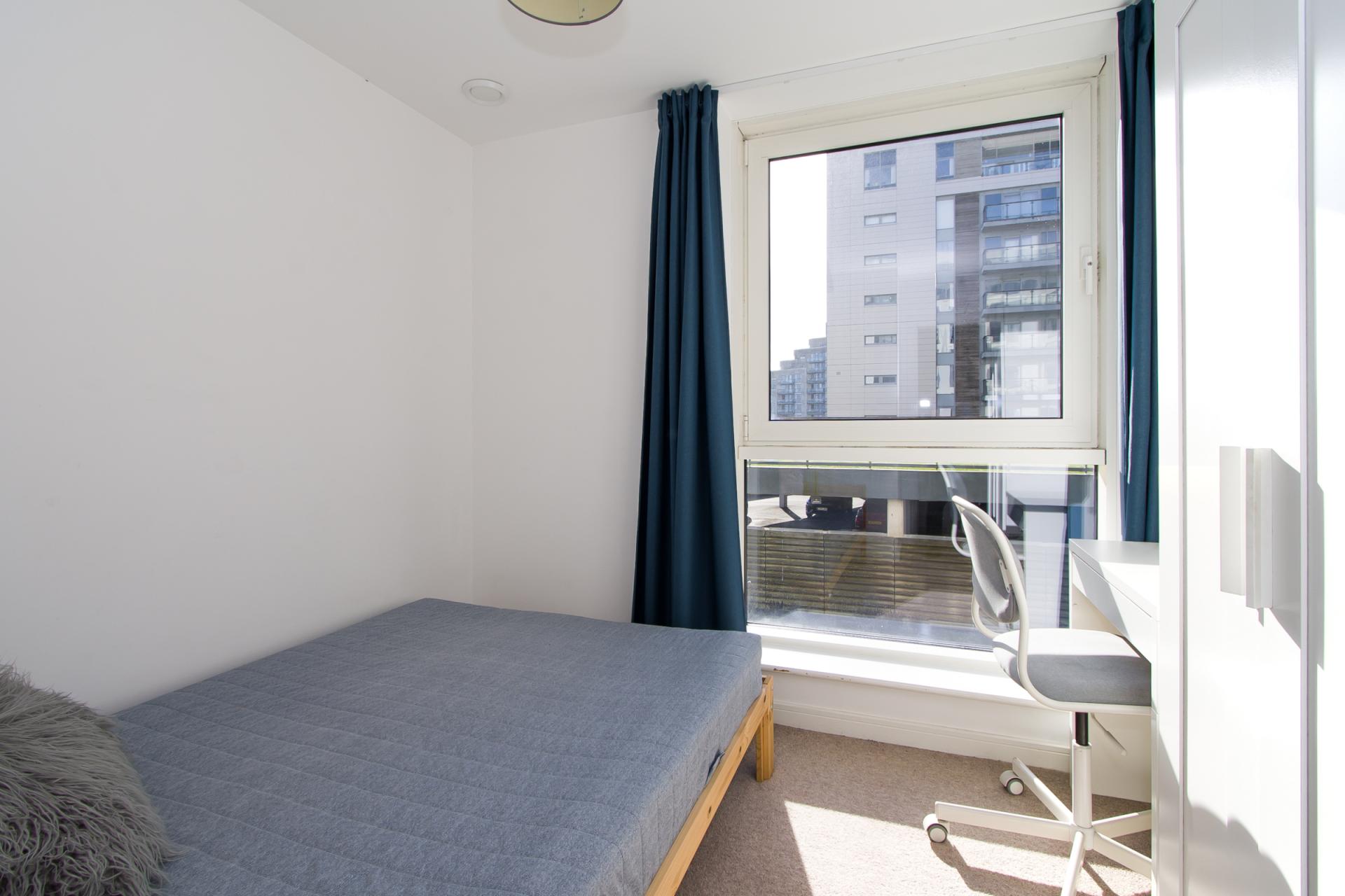 A double bedroom, again with partial water views. Large double glazed window. Fitted carpet. Power points. Wall mounted Dimplex electric heater.