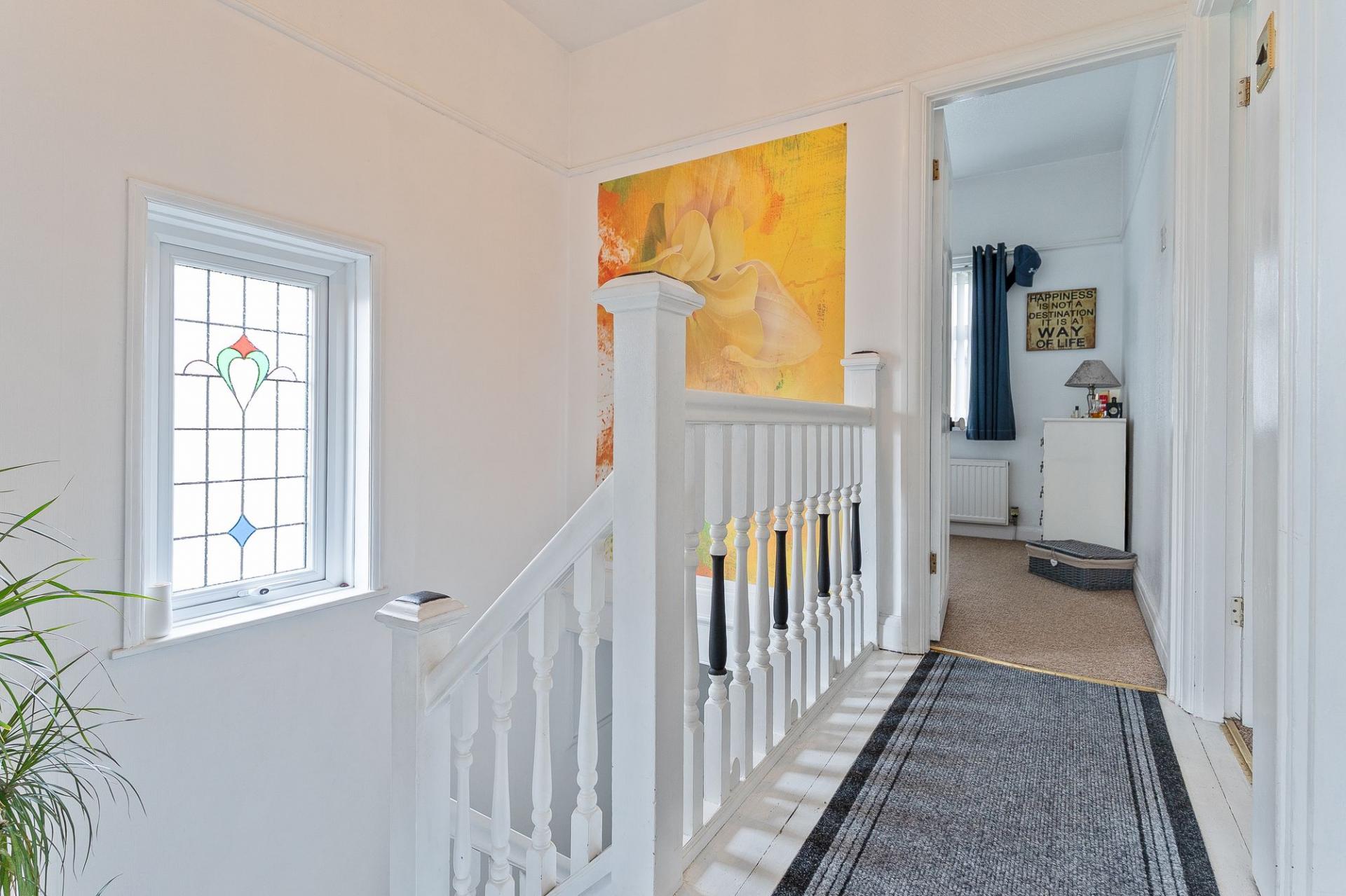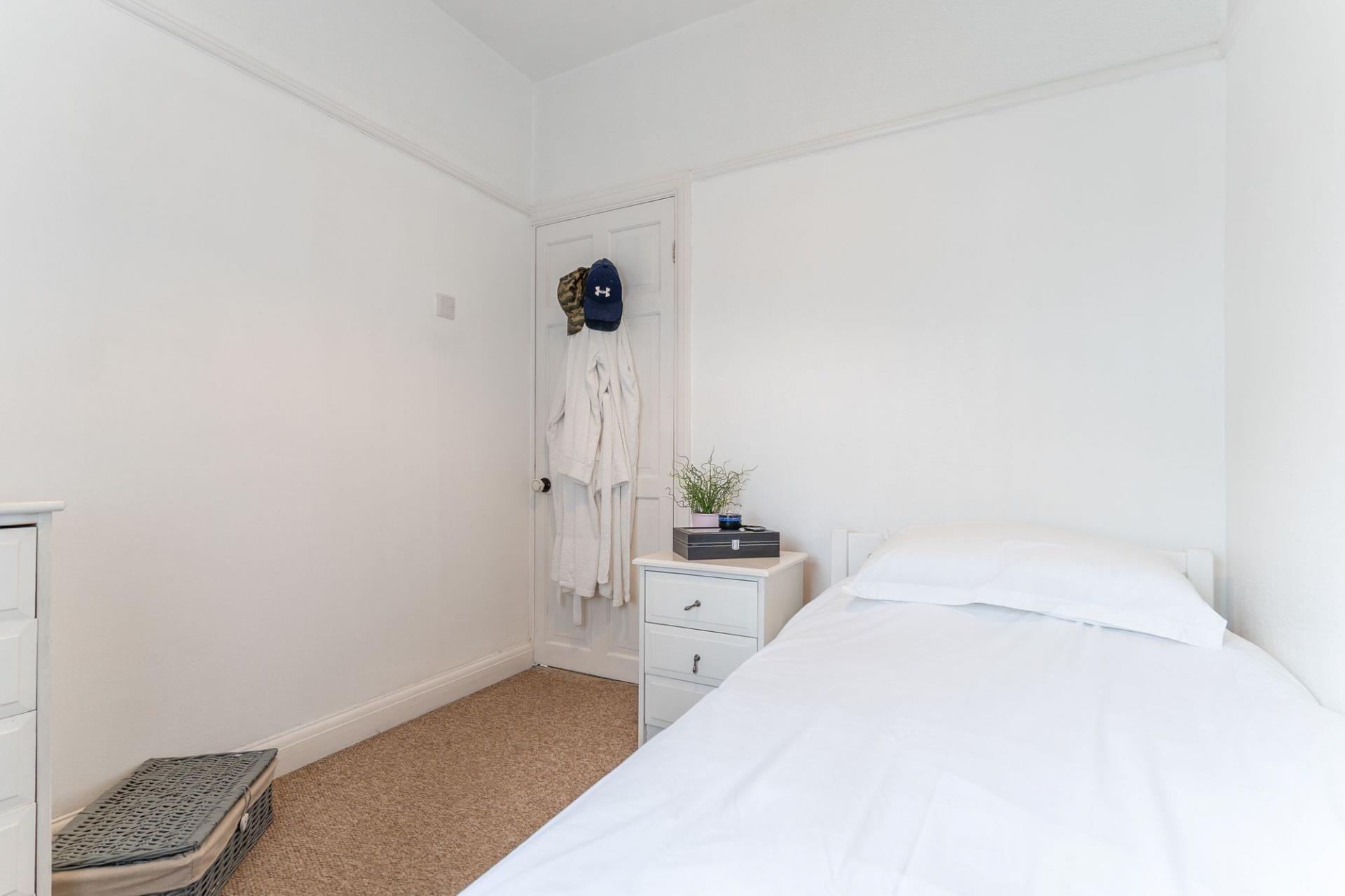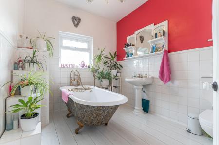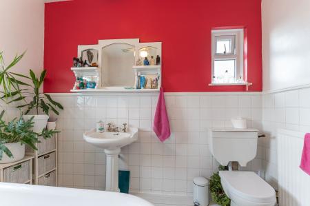 On the first floor, the property offers three well-proportioned bedrooms and a family bathroom. There are two large double bedrooms, each beautifully presented and filled with natural light, and a spacious single bedroom which could also serve as a nursery, dressing room, or study. The family bathroom is a particular highlight, featuring a freestanding roll-top bath that adds a touch of traditional charm and elegance to the space.