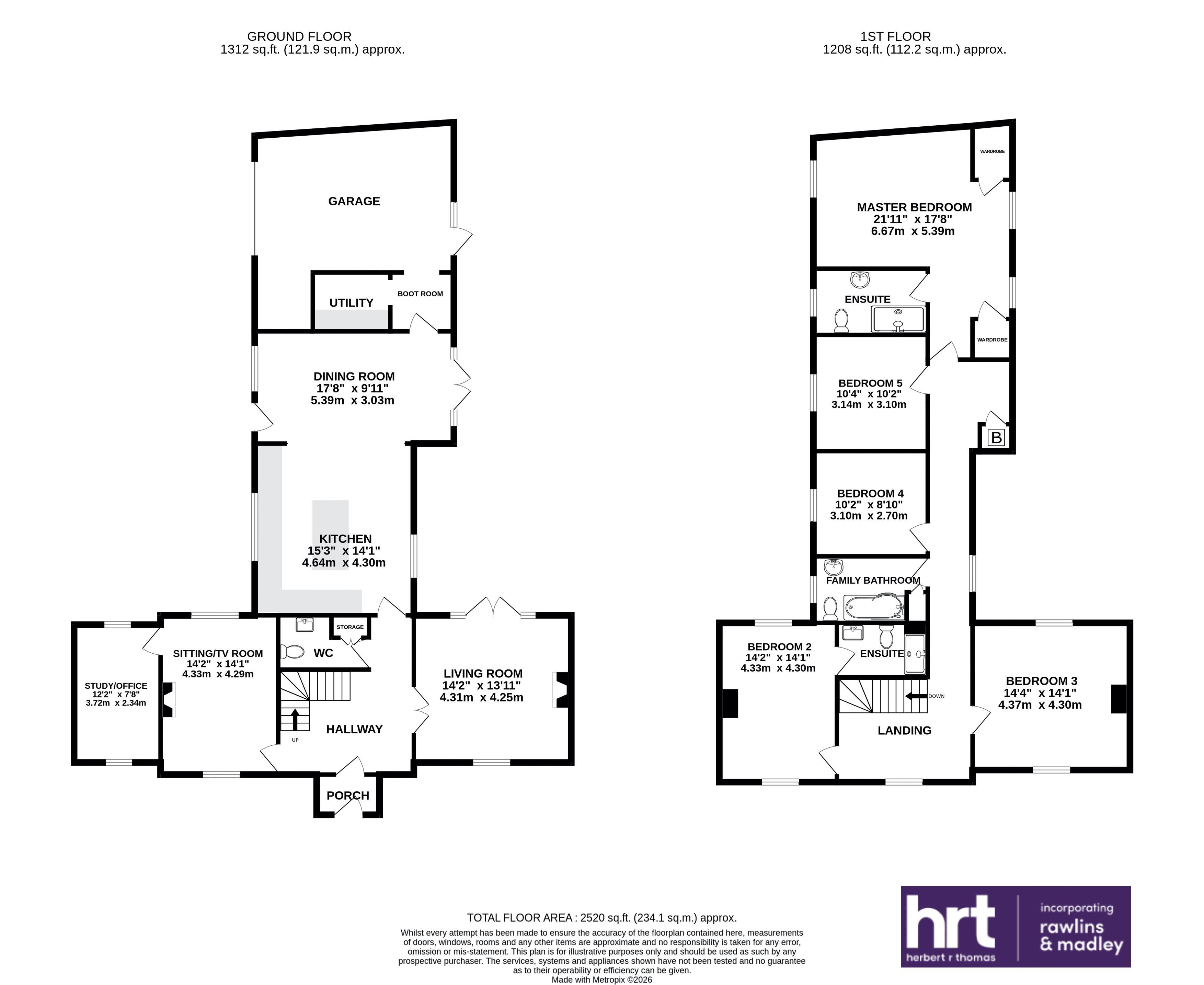 - First floor - 5 double bedrooms of which 2 benefit from en-suite shower rooms and a separate family bathroom.
