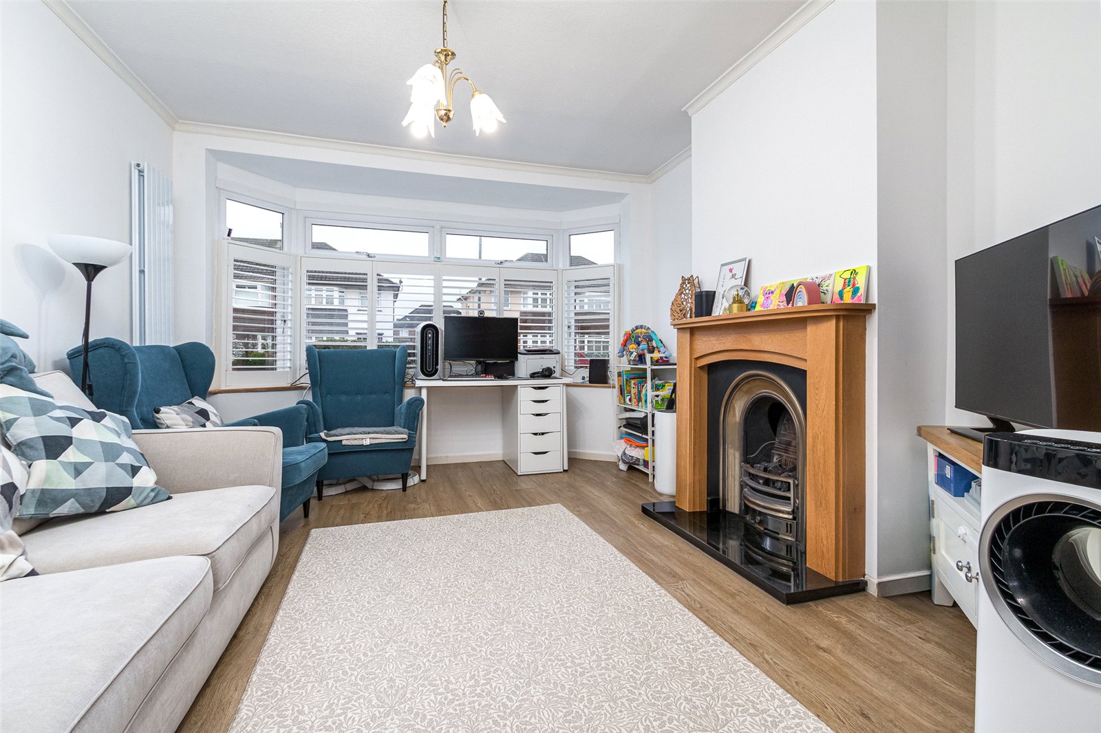 Lounge 12'8" (3.86m) into bay x 11'8" (3.56m) wide uPVC double glazed bay window overlooking the enclosed front garden and quiet road, quality fitted window shutters, feature fireplace with timber surround, inset coal effect gas fire on a black granite hearth, wood effect strip flooring, contemporary radiator, master Broadband point, square opening to dining room.