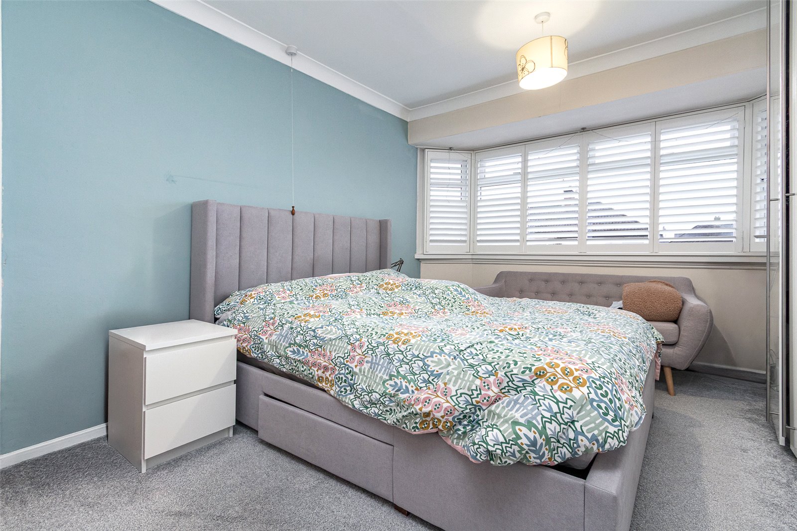 Bedroom 1 14'10" (4.52m) into bay x 11'0" (3.35m) overall Large wide bay window overlooking the front garden and quiet road with quality fitted window shutters, panelled radiator, full set of fitted wardrobes comprising of three doubles and one single with hanging rails and shelving.