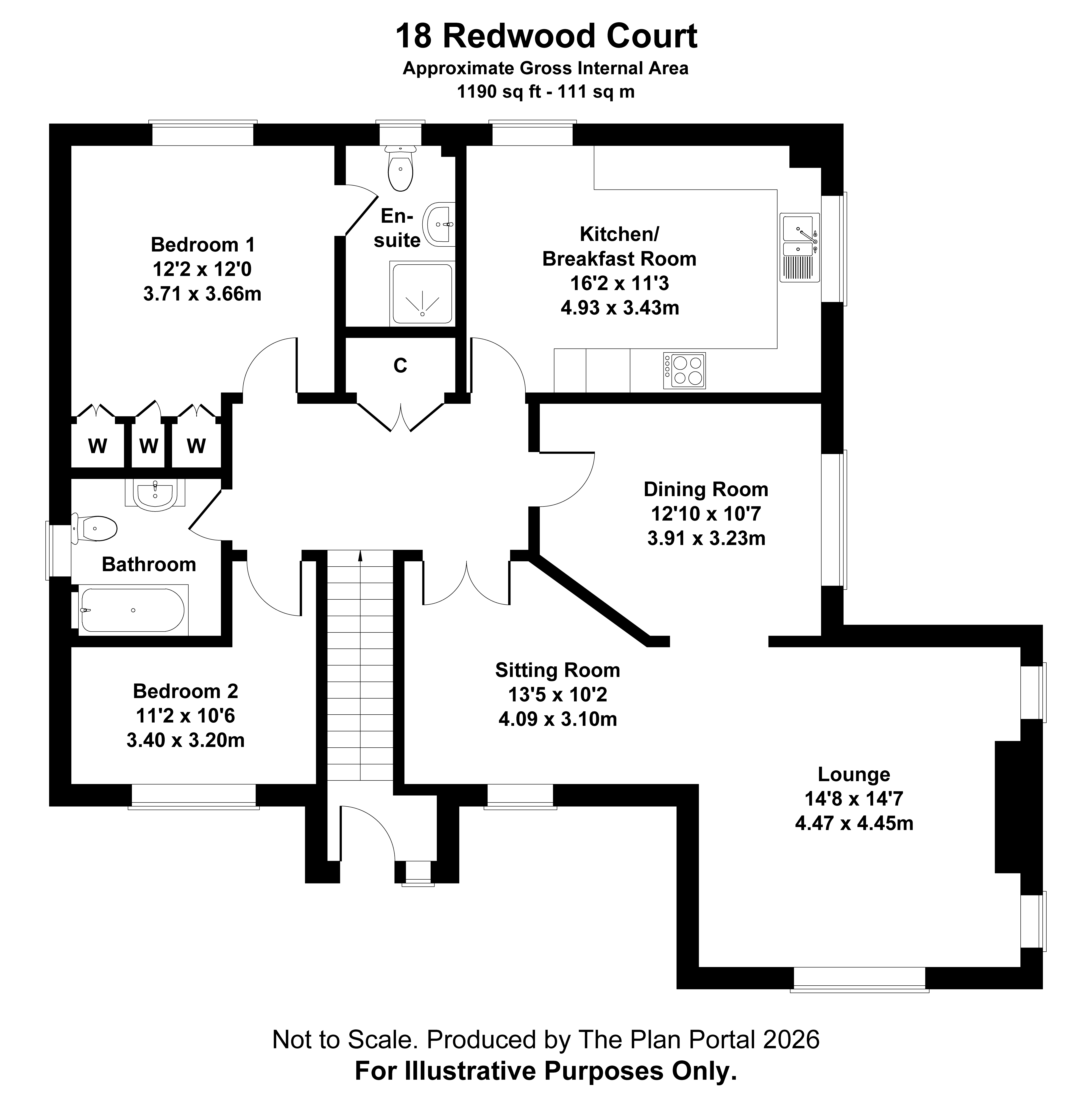 Bedroom 2 112 x 106 A generous second double bedroom overlooking the front cul-de-sac, radiator, coved ceiling.