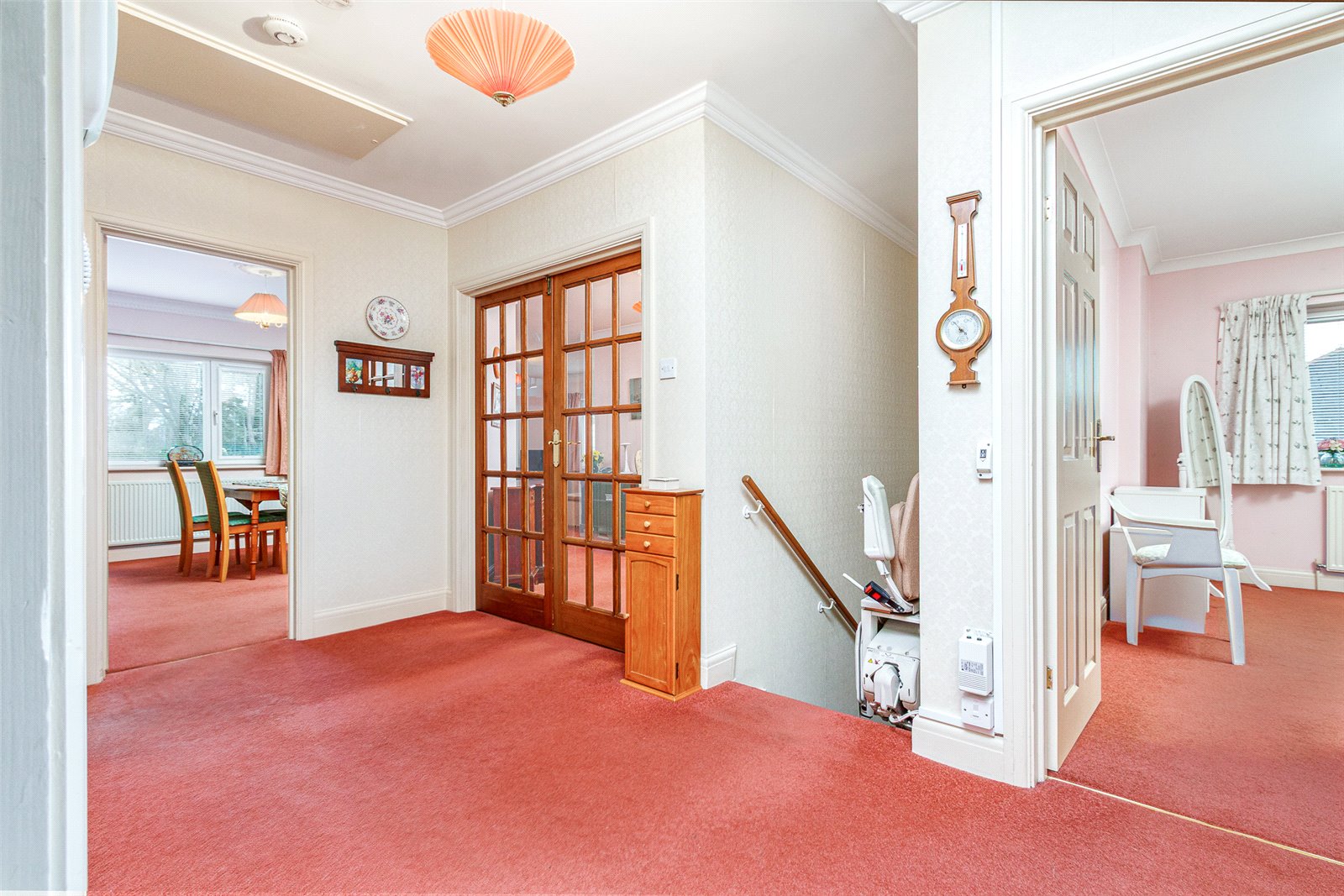 Entrance Porch Approached through a UPVC double glazed entrance door and side screen at the ground level with wood effect cushion flooring, double radiator, easy rising staircase to the first floor hallway and optional stair lift.