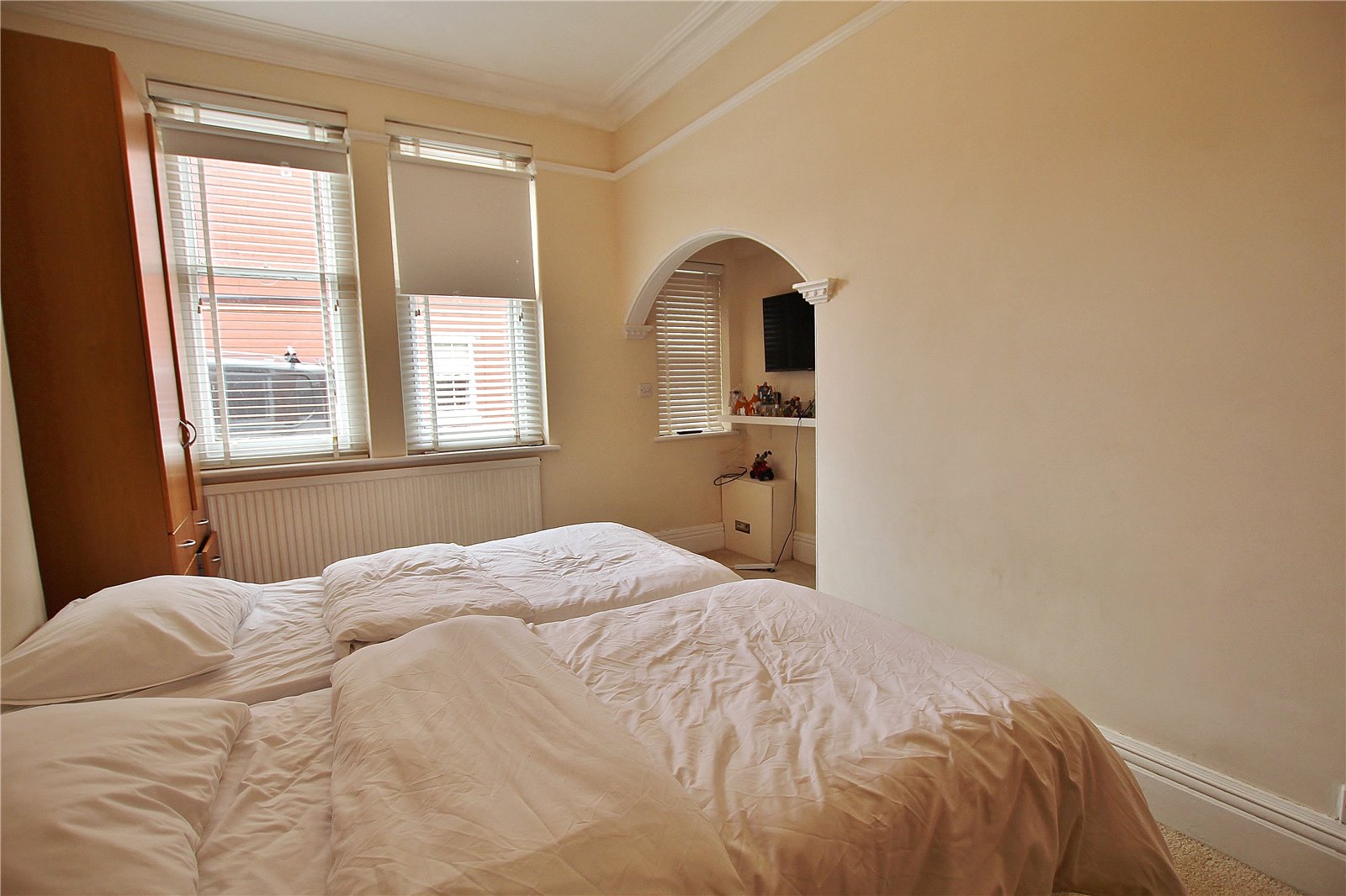 Bedroom 2 13'9" (4.19m) x 13'3" (4.04m) into recess Sash windows to the side, large radiator, period coved ceiling, picture rails and high level moulded skirting boards, arch recess dividing a small section of the room with under stairs storage.