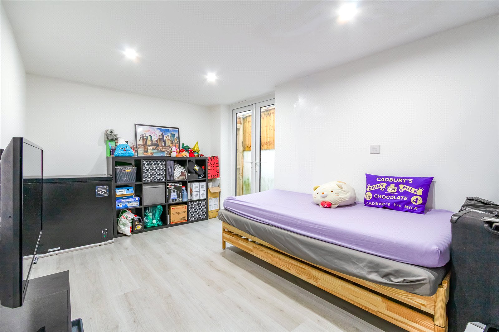 Partially Converted garage 16'1" (4.9m) x 8'6" (2.59m) With French uPVC glazed doors and window to side, power points.