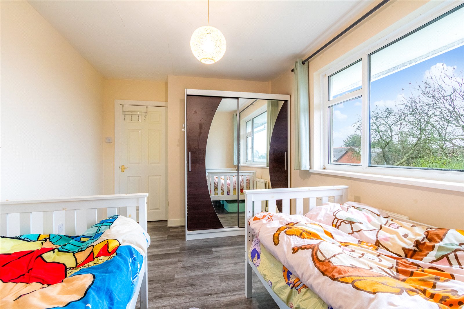 Bedroom 1 13'5" (4.09m) x 10'7" (3.23m) into wardrobes Window to front, a double bedroom with mirror fronted sliding wardrobes to one