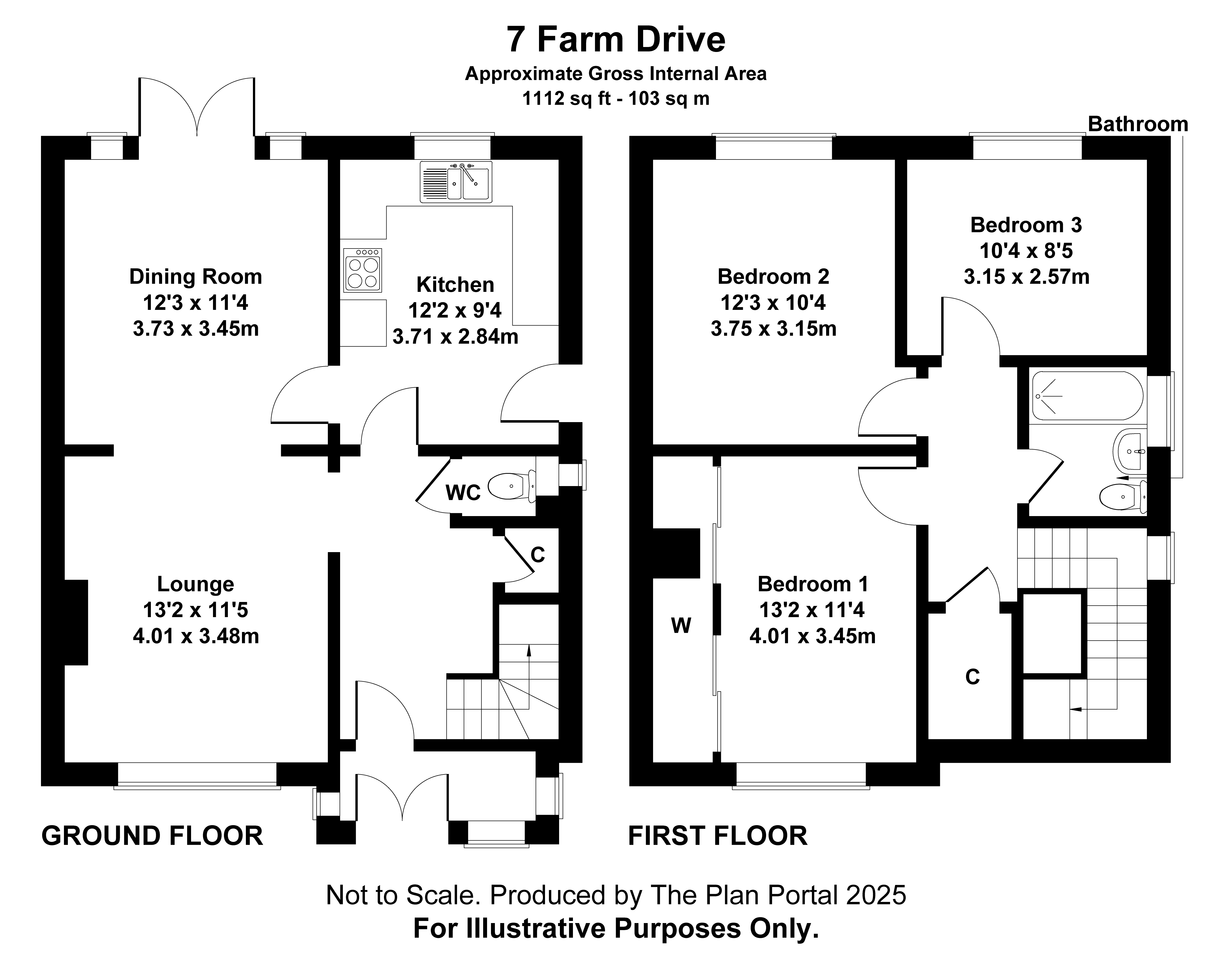 Bedroom 1 13'2" (4.01m) x 11'4" (3.45m) including    Large window overlooking the front garden and quiet culde-sac, radiator, built-in wardrobes with sliding doors,