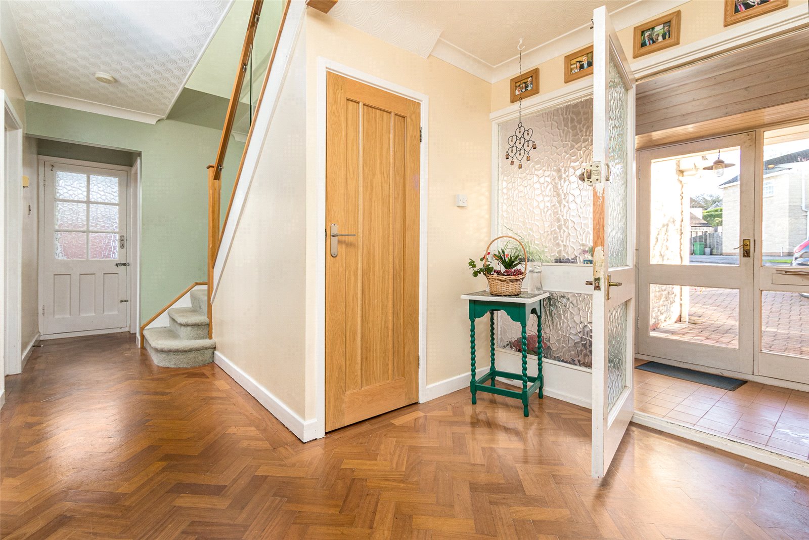 Entrance Hallway Large central hallway giving access to all of the ground floor accommodation, original herringbone style woodblock flooring, double radiator, large under stairs storage cupboard with further woodblock flooring, easy rising staircase with Neville Johnson glazed banister leading to first floor landing. Door to a side porch.