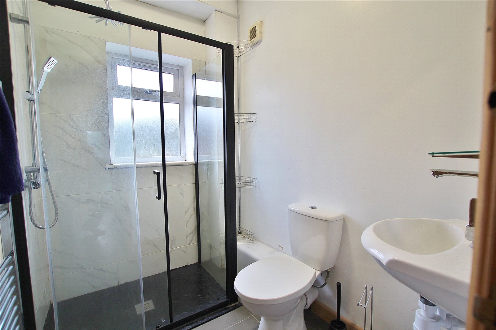 Shower Room Opaque window to the rear, purpose built shower enclosure glazed sliding door, rainfall style shower head with flexible handle and ceramic wall tiles, wall mounted ceramic wash hand basin, and close coupled push button WC, ceramic floor tiling, heated chrome tile rail.