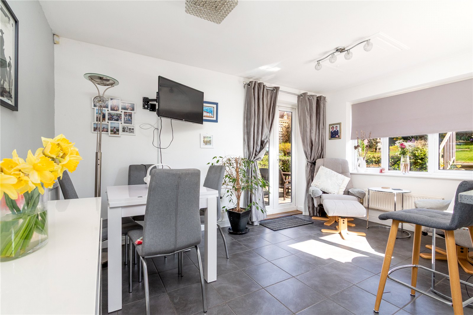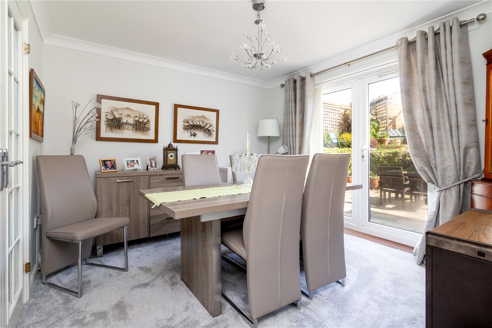 Lounge 15'9" (4.8m) x 11'10" (3.61m) A generous size principal reception room with deep silled bay window overlooking the quiet Close, feature fire surround with coal effect gas fire with a matching back and hearth, coved ceiling, two radiators, twin small paned glazed doors to dining room.