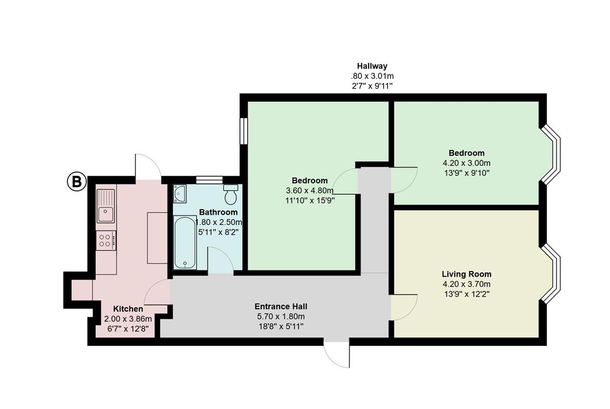 Bedroom 2 w: 4.8m x l: 3.6m x h: 3m (w: 15' 9" x l: 11' 10" x h: 9' 10")