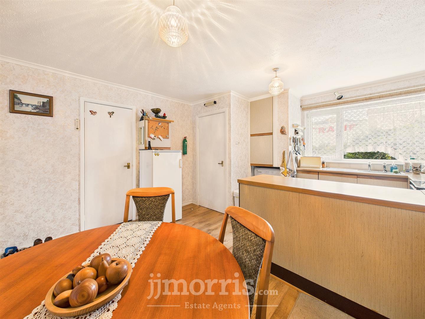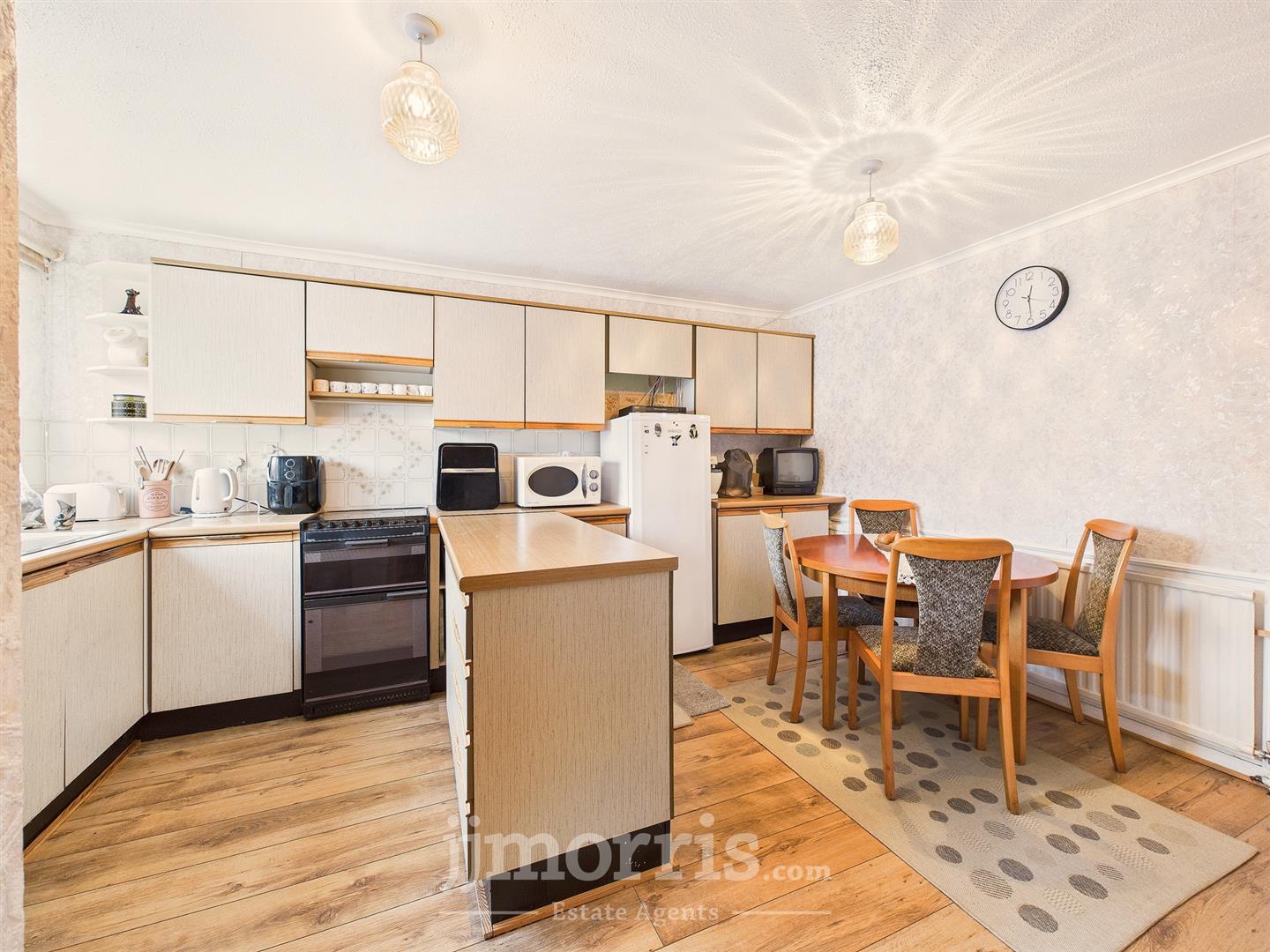 Kitchen/Dining Room - Having a range of wall and base units with complimentary worktop surfaces, stainless steel sink and drainer unit, plumbing for washing machine, gas cooker with extractor fan over, part tiled walls, wood effect flooring, uPVC double glazed window, radiator, coved ceiling, understairs storage, door to:-