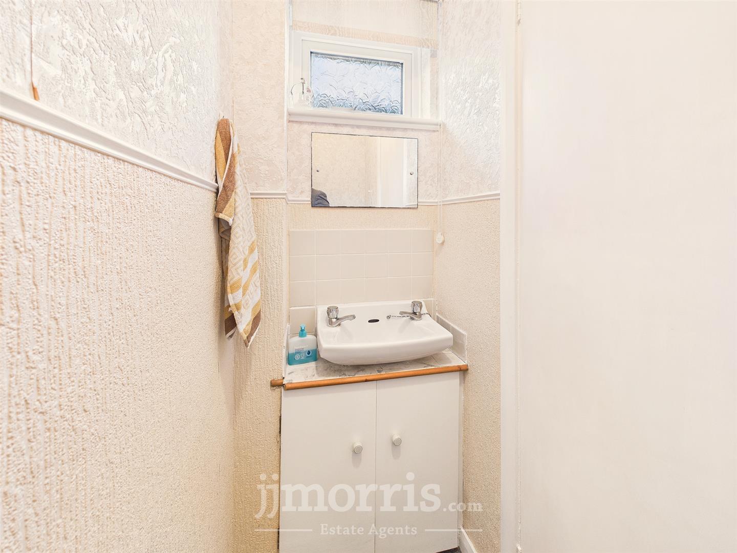 Wc - uPVC double glazed window, low flush WC, vanity unit with hand wash basin, part tiled wall, dado rail, coved ceiling.