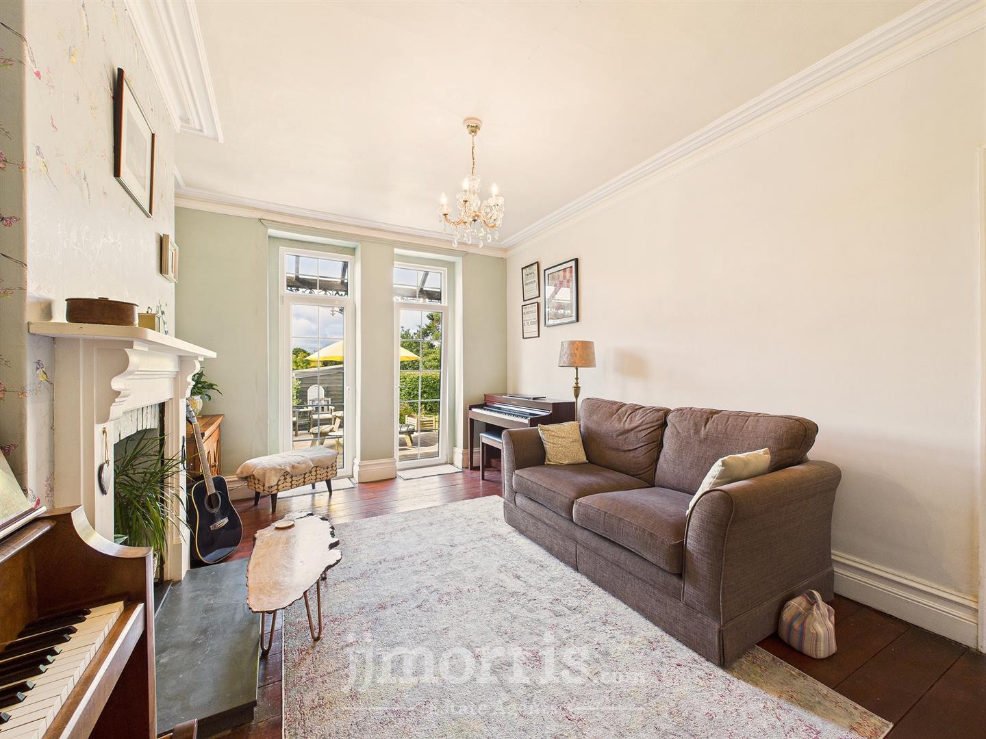 Sitting Room - Feature wooden fire surround, two uPVC double glazed doors opening to the patio area, exposed floorboards, coved ceiling.