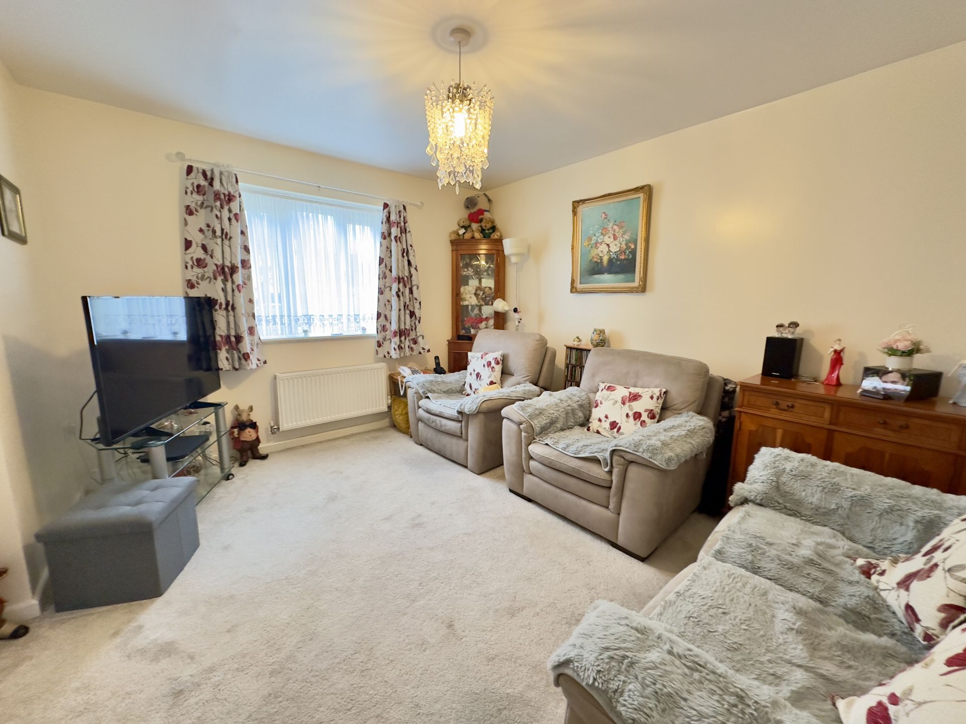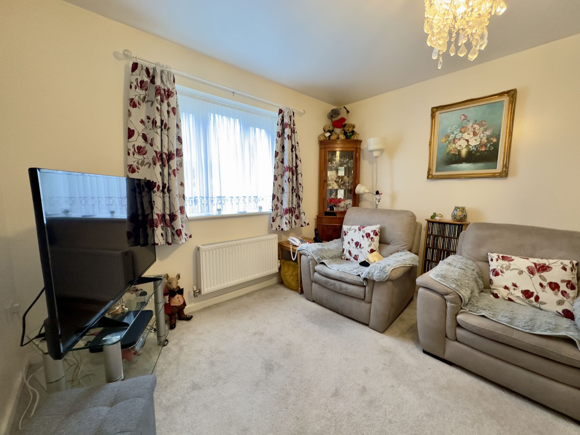 LOUNGE: 3.94m x 3.49m (12'11" x 11'5"), uPVC double glazed window to the front aspect, TV and telephone point, radiator and glazed door to: