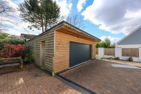 6.0m x 3.2m (19' 8" x 10' 6") Fitted with electric remote wooden double doors, CCTV camera, power and light. Please note this is situated next to the ground floor bedroom and could be converted to form an annex if needed.