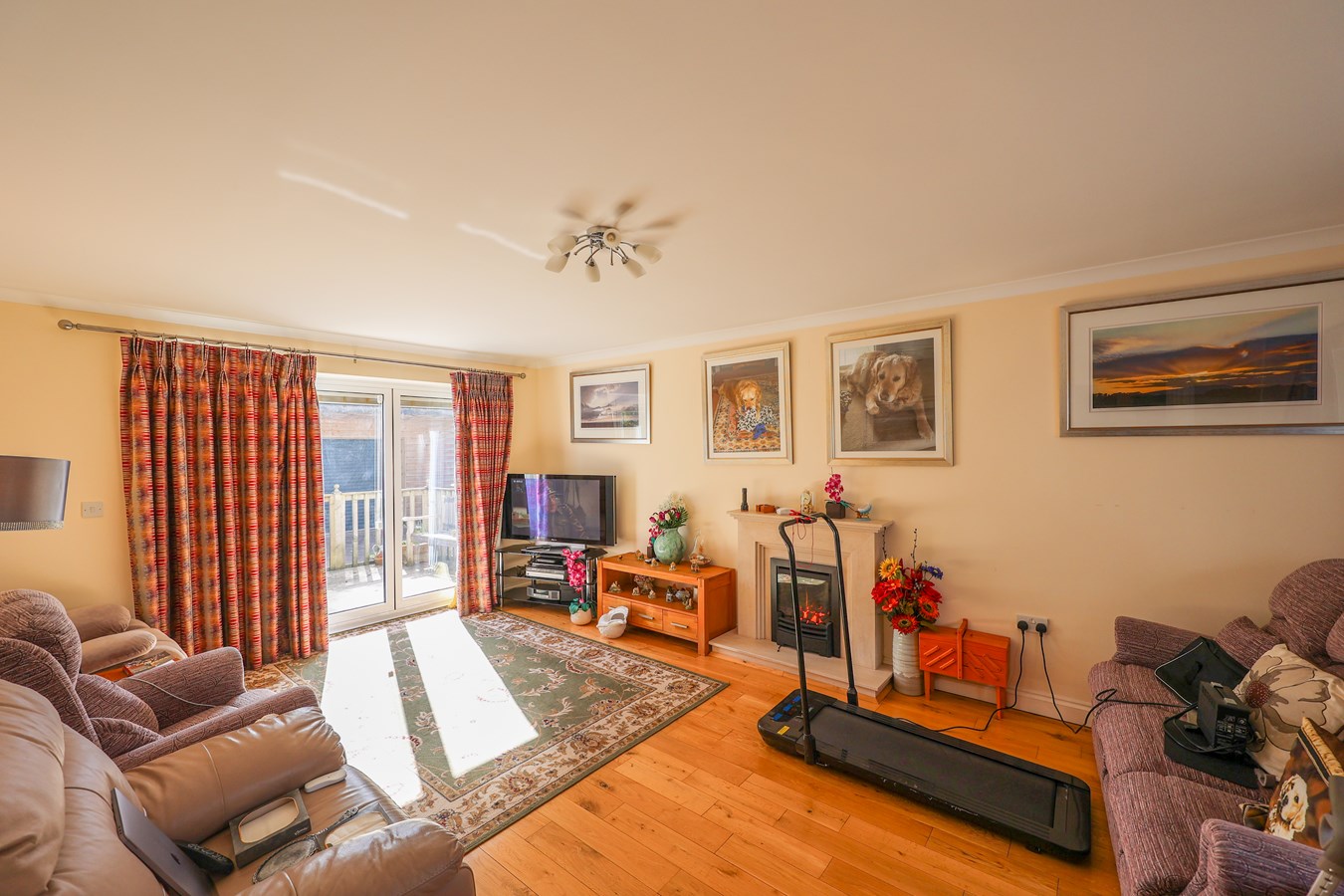 22' 4" x 13' (6.81m x 3.96m) This bright and inviting room exudes warmth and style, featuring elegant solid oak flooring and a charming bay window at the front that fills the space with natural light. French doors at the rear open onto the patio and garden, seamlessly blending indoor and outdoor living. The centerpiece is a stunning limestone fireplace with a matching hearth, complete with a fitted flame-effect gas fire, creating a cozy and sophisticated atmosphere. With two radiators for added comfort, this room is both functional and beautifully designed.
