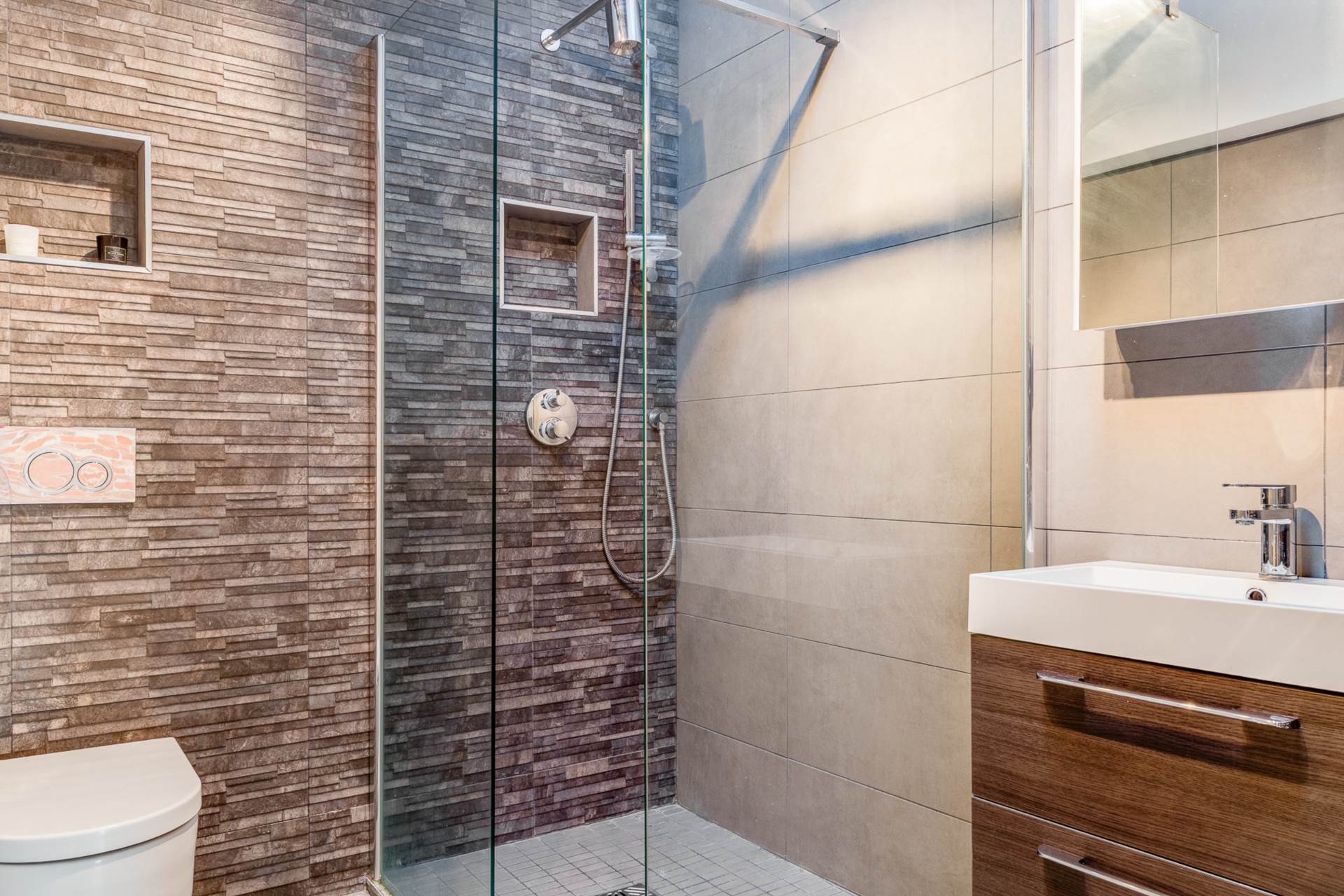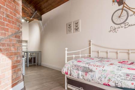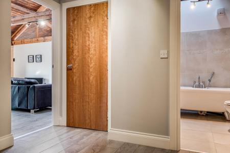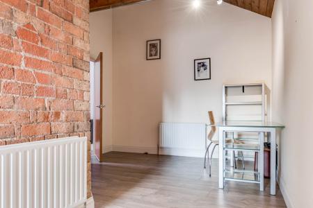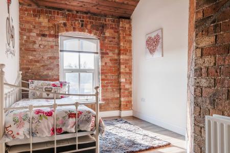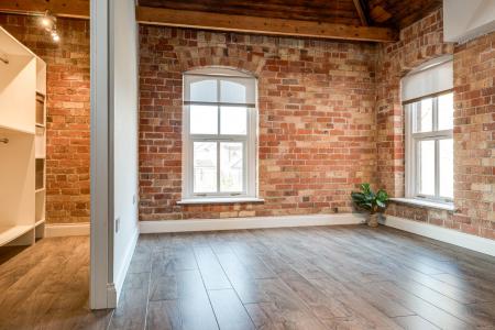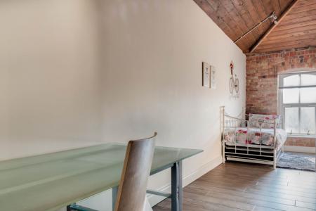 Exposed brick wall. Timber clad ceiling. Walk-In dressing room. Stunning modern ensuite shower room with high quality fixtures and fittings comprising low flush WC, vanity unit and tiled corner shower cubicle with shower screen. Tiled walls and floor featuring underfloor heating. Velux window.